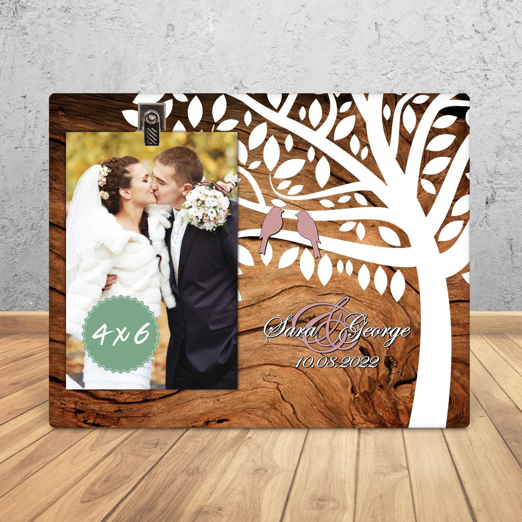 Immortalize life's precious moments with our rustic, personalized frame - an ideal gift for engagements, weddings, and anniversaries. Customize it as an engagement gift or a newlywed gift, signifying the beautiful journey from 'Just Married' to 'Mr. and Mrs.'. This one-of-a-kind frame is not only a thoughtful bride gift, but also a sentimental parent wedding gift. Celebrate a couple's love or honor your parents' anniversary with this unique memento. Perfect for encapsulating wedding photos, it's more than just a frame, it's a keepsake.