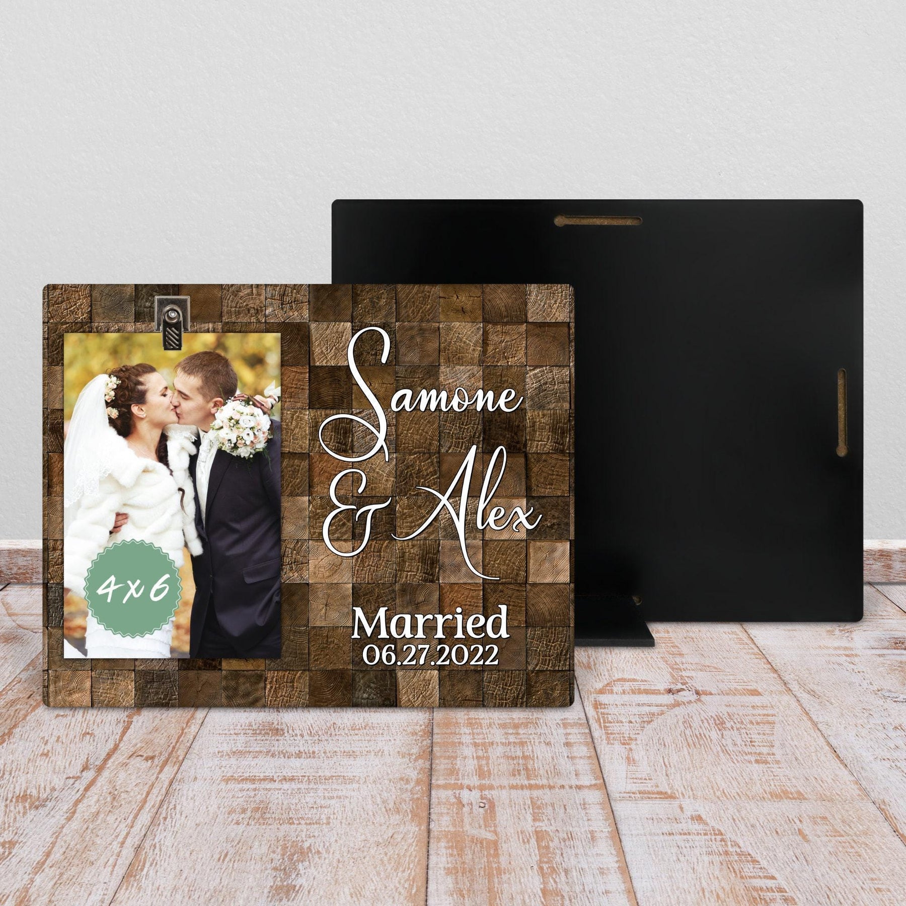 Immortalize life's precious moments with our rustic, personalized frame - an ideal gift for engagements, weddings, and anniversaries. Customize it as an engagement gift or a newlywed gift, signifying the beautiful journey from 'Just Married' to 'Mr. and Mrs.'. This one-of-a-kind frame is not only a thoughtful bride gift, but also a sentimental parent wedding gift. Celebrate a couple's love or honor your parents' anniversary with this unique memento. Perfect for encapsulating wedding photos, it's more than just a frame, it's a keepsake.