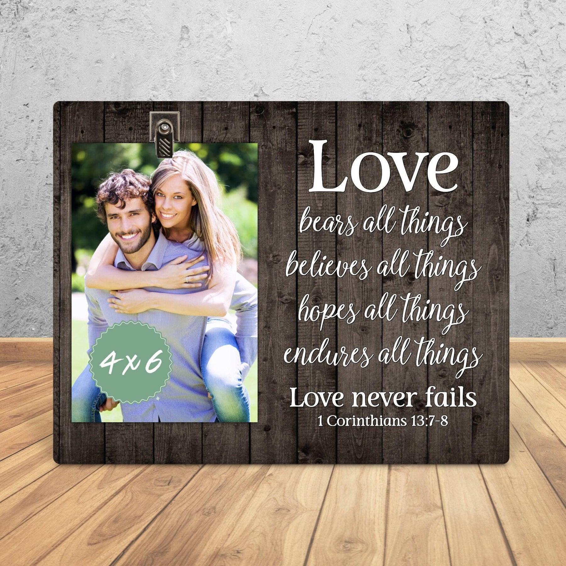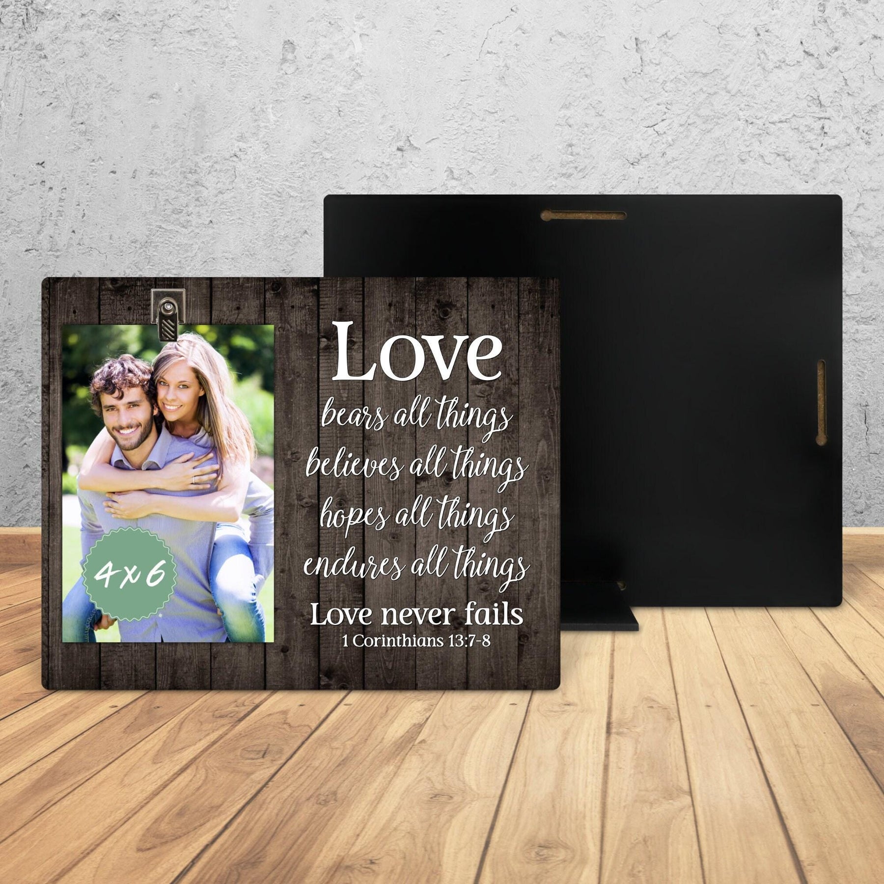 Personalized Engagement and Wedding Photo Frame - Custom Mr & Mrs Picture Frame for 5th Anniversary, Bookshelf, and Desk Decor