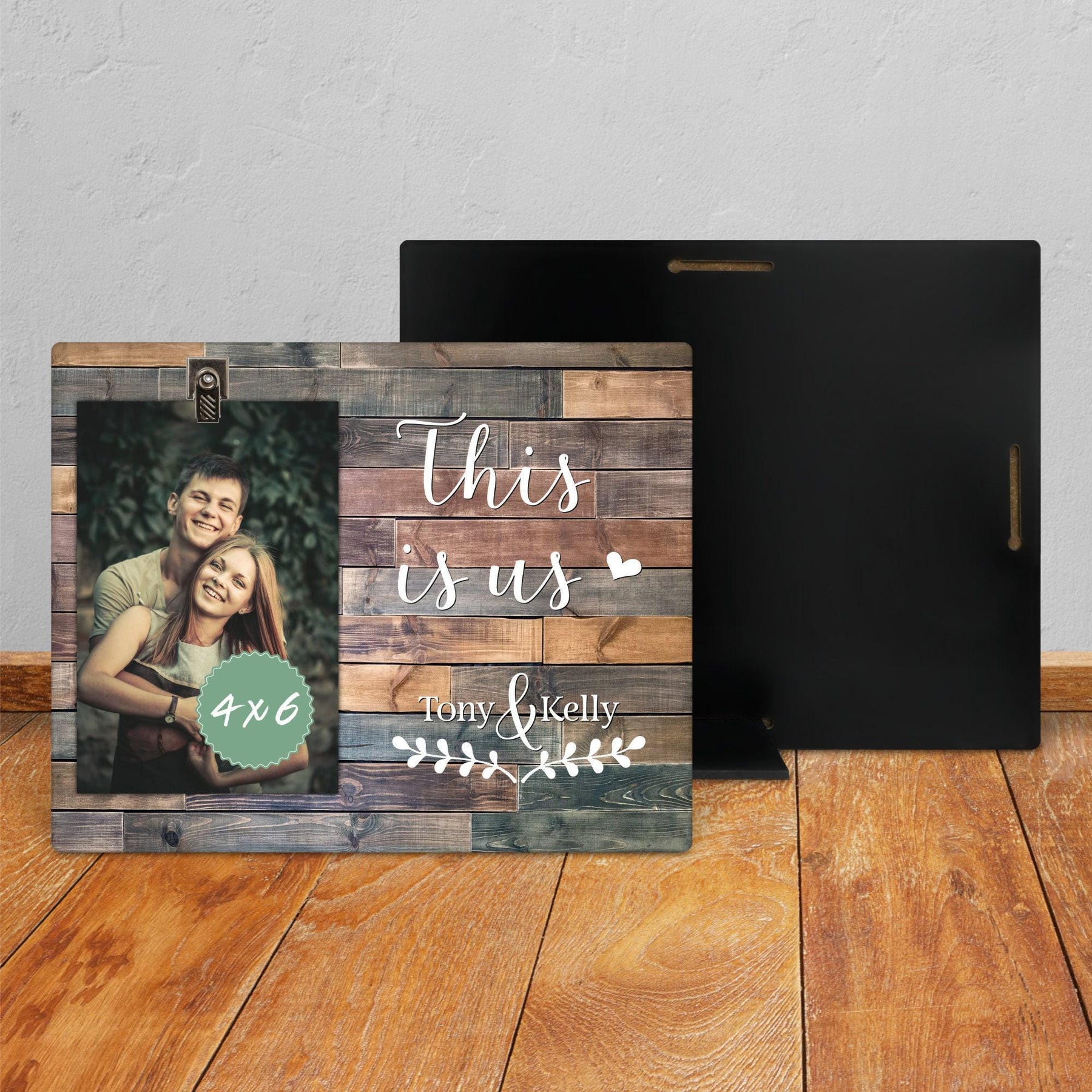 Personalized Mr and Mrs Wedding Frame: 4x6 Photo Clip, Rustic Wood Look