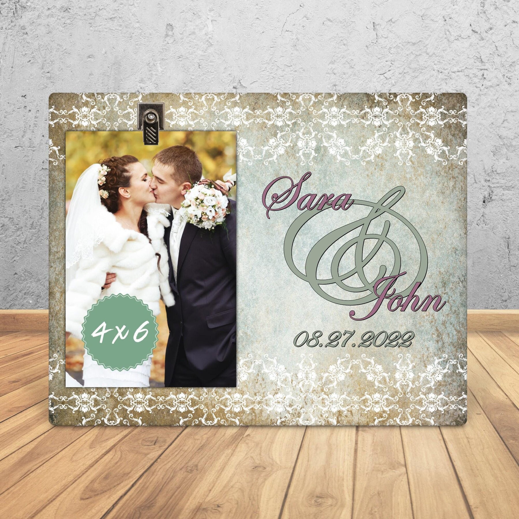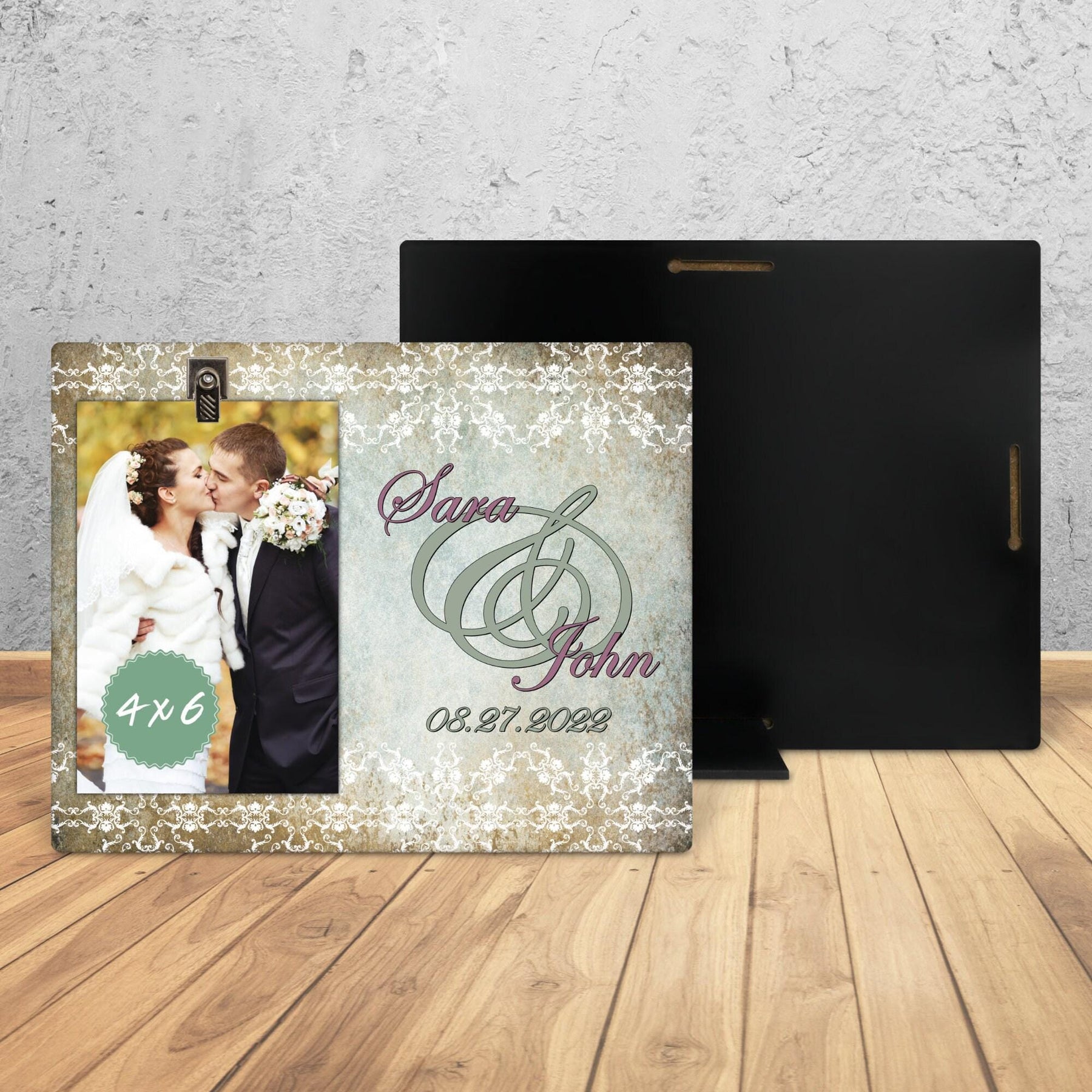 Celebrate love with our beautifully crafted Mr. and Mrs. custom wedding frame. A perfect engagement gift, this personalized frame doubles as a bridal gift and photo holder for your cherished wedding pictures. Ideal as a just married or newlywed gift, it makes a thoughtful keepsake. Embrace memories from your special day or gift it as a unique anniversary frame. An exquisite bride gift that truly signifies a couple's bond.