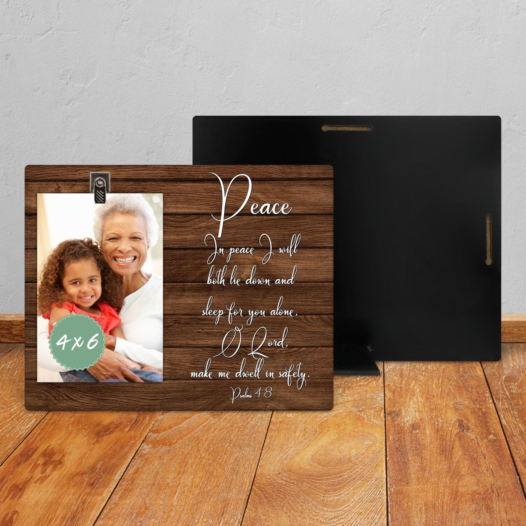 Meet our 8x10 Hardboard Picture Frame, a versatile and stylish photo display option. It includes a clip for showcasing a 4x6 photo and a detachable kickstand for freestanding display.