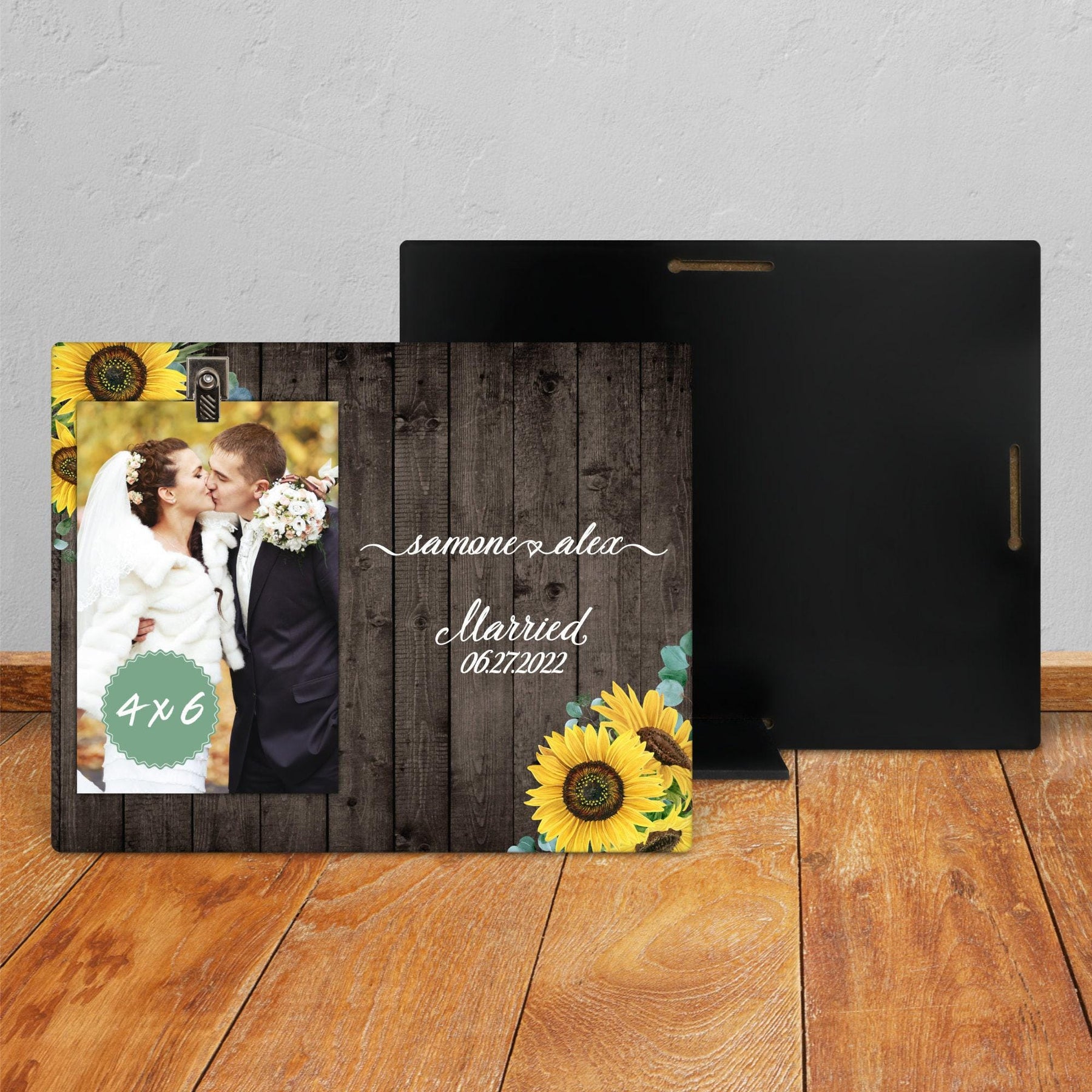 Sunflower Wedding Picture Frame: 4x6 Photo Clip, Newlywed Gift