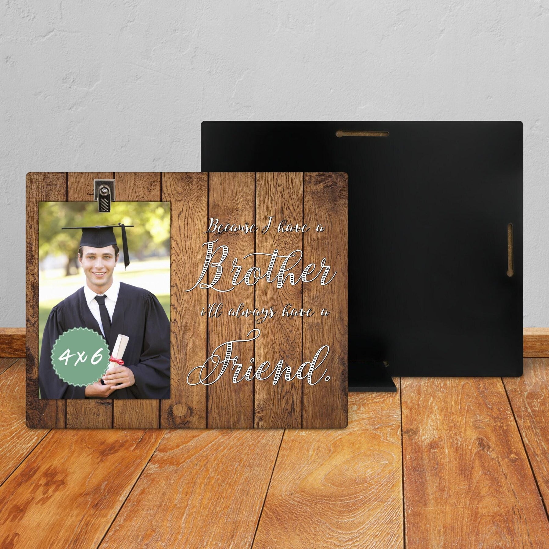 Show your love with our custom photo gift, an ideal present for your brother or best friend. These picture frames function beautifully as photo holders, encapsulating your shared memories. Personalize this memorial frame for your big brother, creating a heartfelt keepsake. Perfect as a thank you gift, this piece serves as a tribute to your unique bond. Gift your best friend or brother something special that speaks volumes of your deep connection.