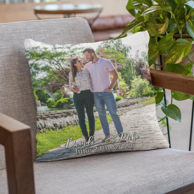 Personalized Photo Pillow Cover: Linen Newlywed Gift