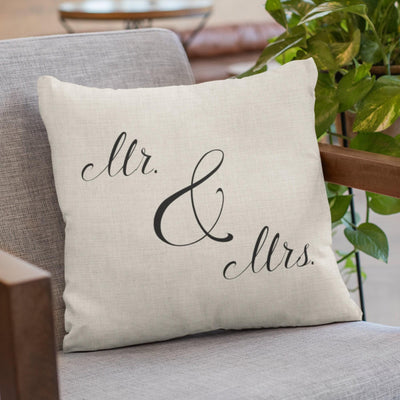 Custom Mr & Mrs Linen Throw Pillow Cover: Newlywed Gift
