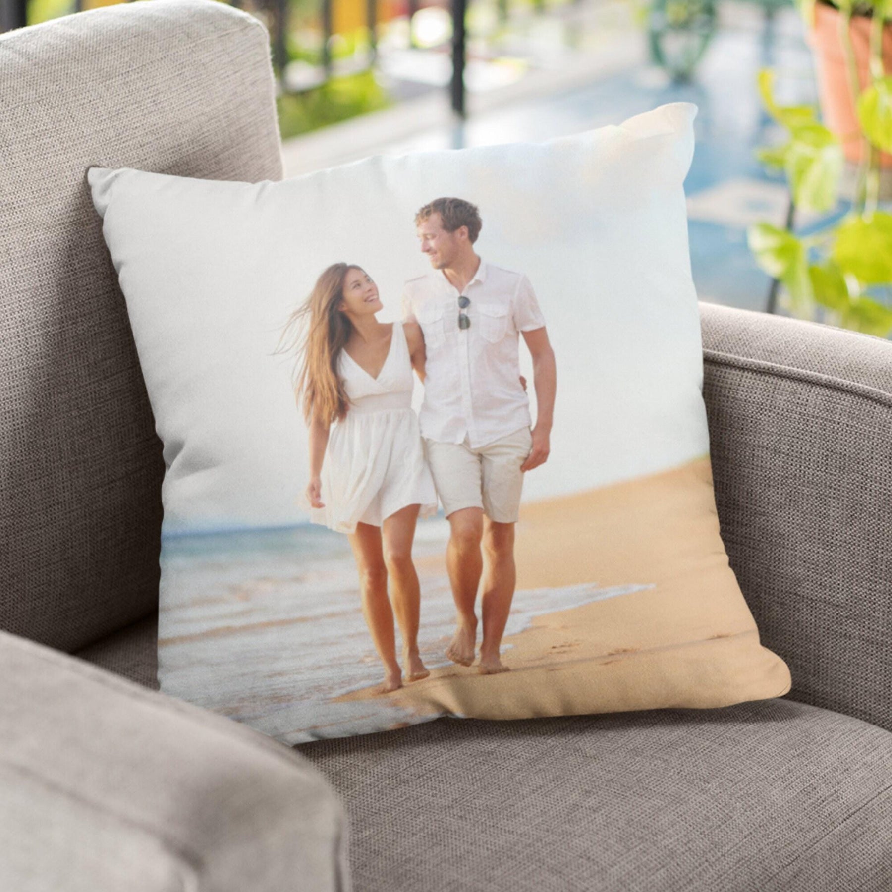 Personalized Photo Pillow Cover: Linen Newlywed Gift