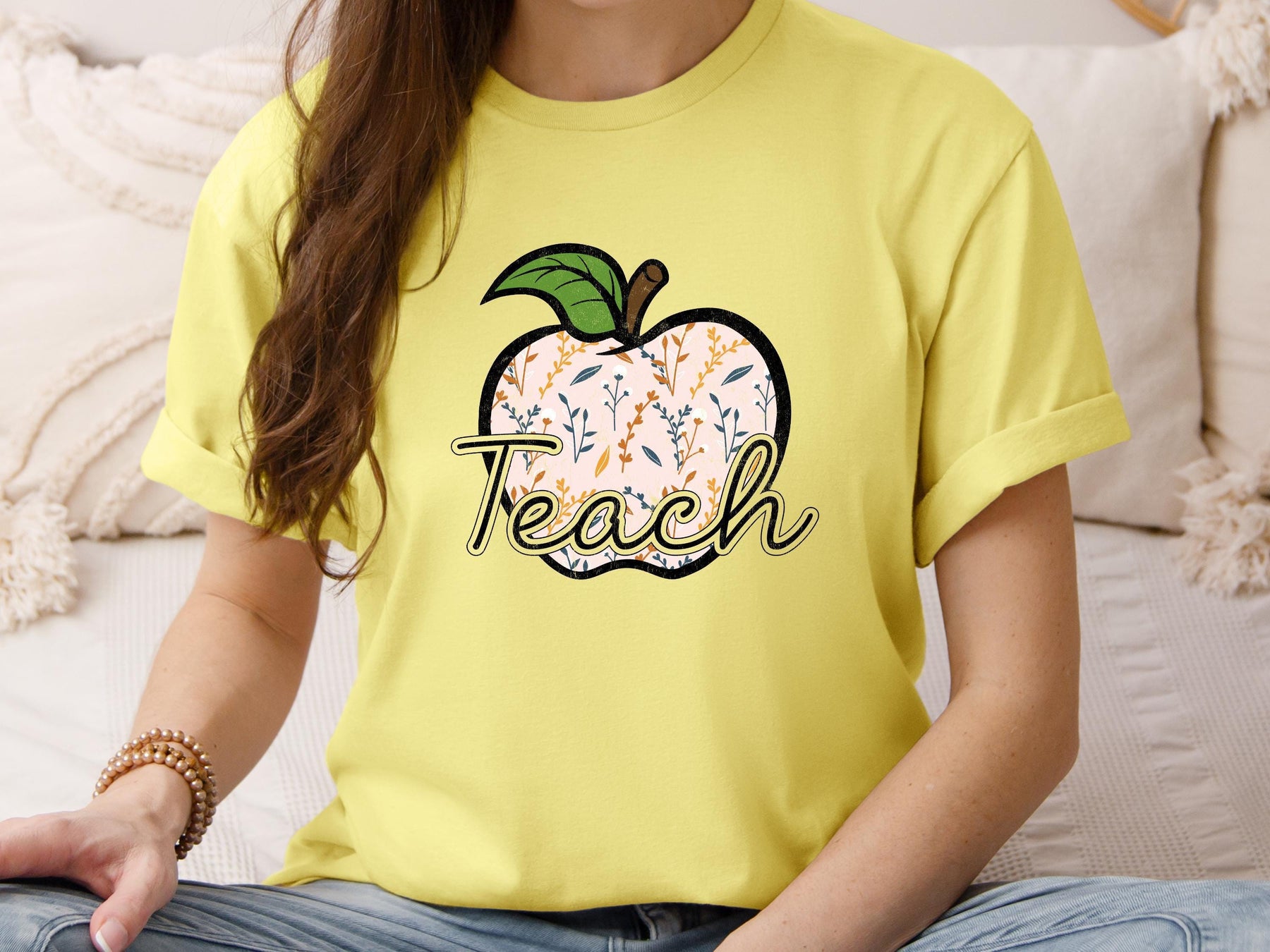 Custom Teacher Shirt: Floral Apple Design, Appreciation Gift
