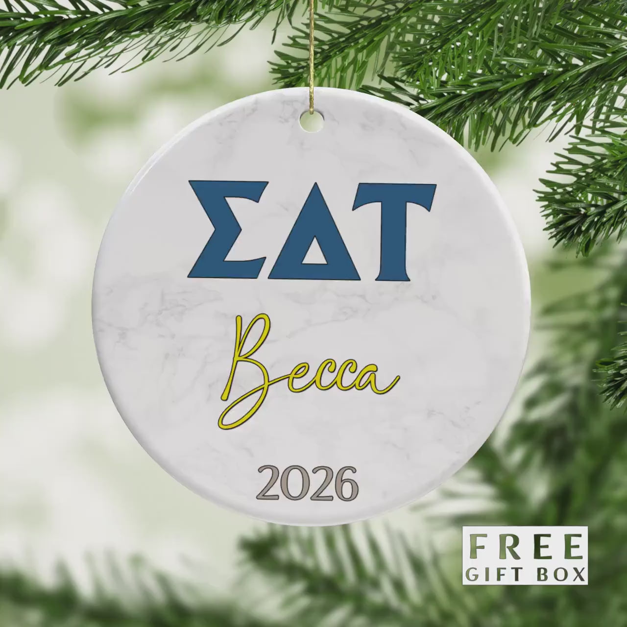 Sigma Delta Tau Sorority Ornament: Custom College Merch for Big Little Sorority Gifts