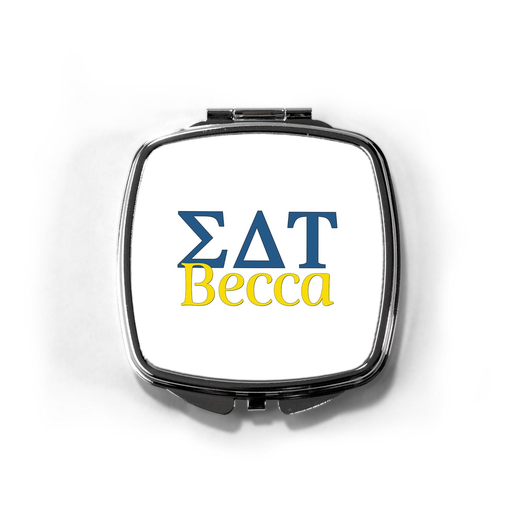 Sigma Delta Tau Sorority Pocket Mirror - Greek Letters Custom Makeup Compact