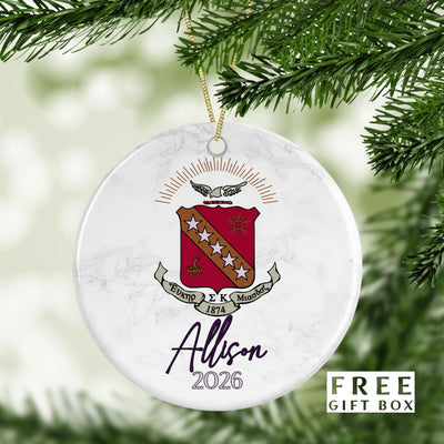 From car coasters that keep your car clean and stylish to compact mirrors for quick touch-ups on the go, we’ve got you covered. Our cosmetic bags make organizing beauty essentials a breeze, while our cozy pillows add a personal touch to any space. For the holiday season or year-round decor, our beautiful ornaments are a wonderful way to show your Sigma Kappa pride.