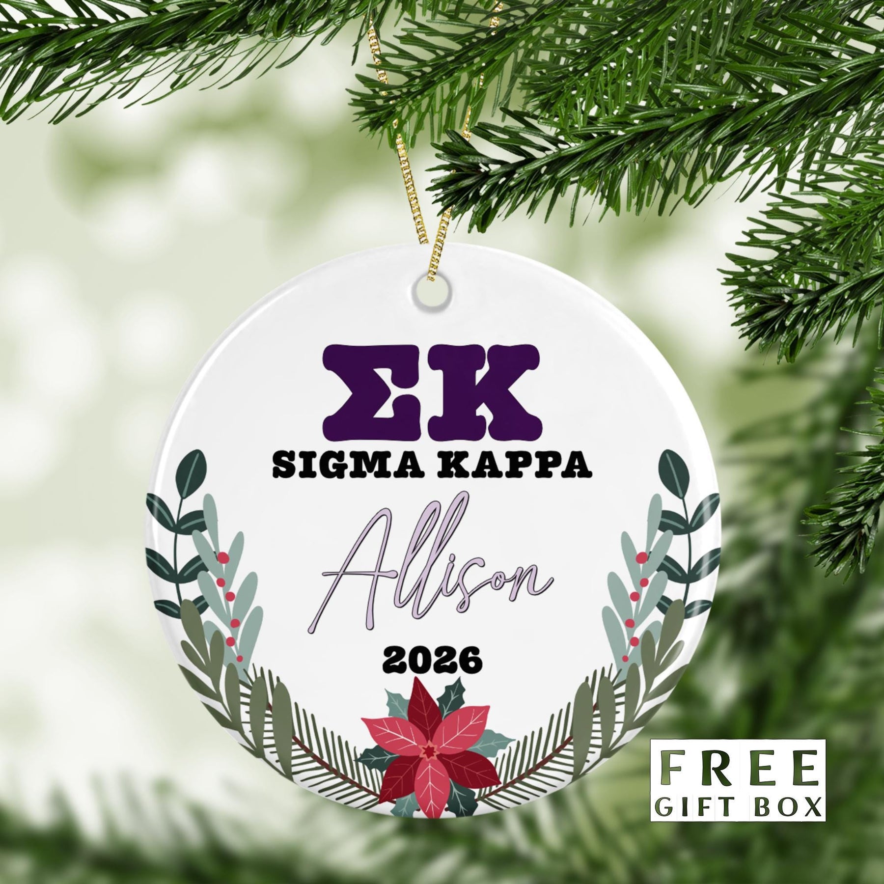 Sigma Kappa Sorority Ornament: Custom College Merch for Big Little Sorority Gifts