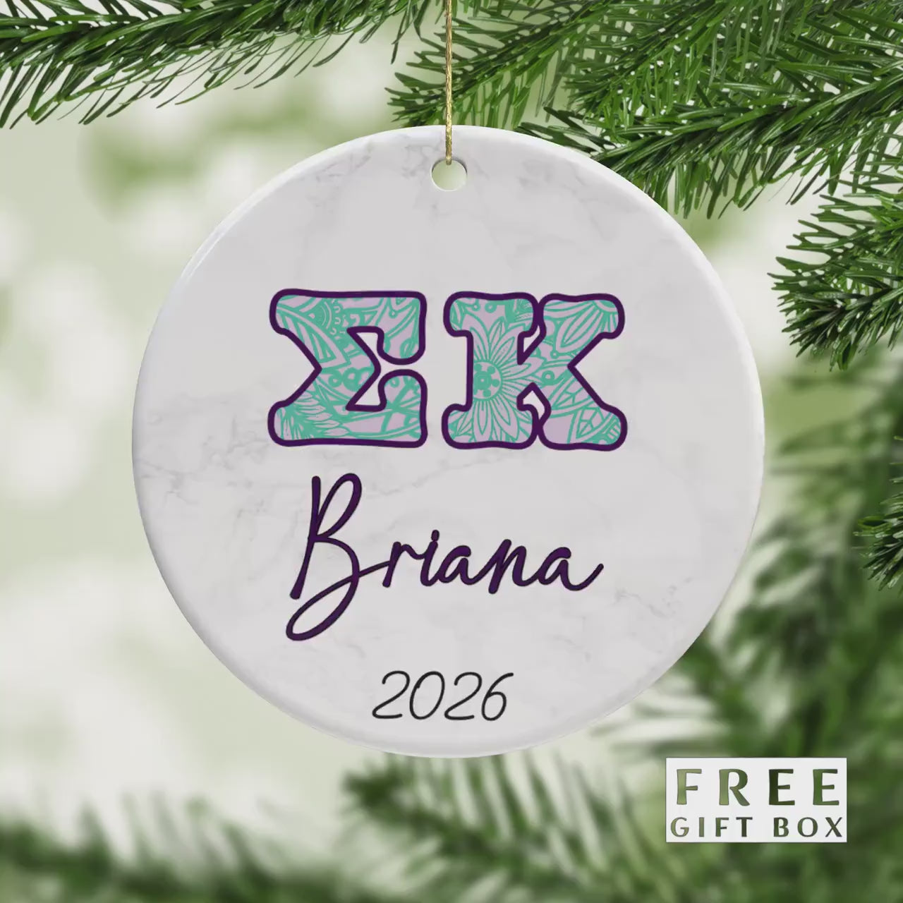 Sigma Kappa Sorority Ornament: Custom College Merch for Big Little Sorority Gifts