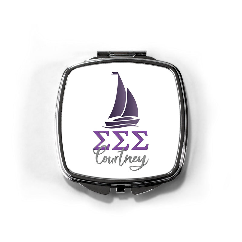 Sigma Sigma Sigma Sorority Pocket Mirror - Greek Letters Custom Makeup Compact