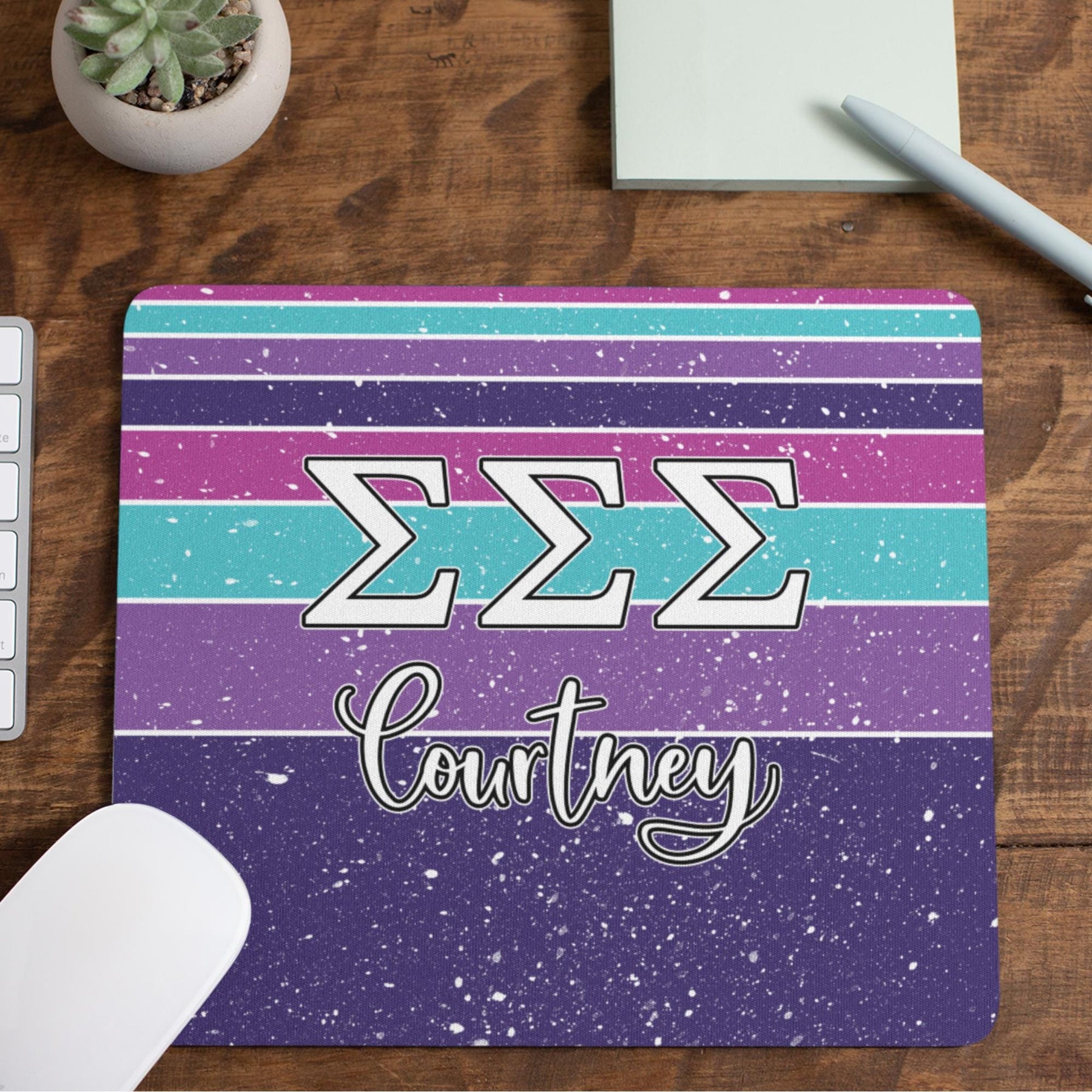 Celebrate your Tri Sigma, Sigma Sigma Sigma pride with this custom sorority mousepad! Ideal for Big Little Sorority exchanges, this mousepad is a must-have desk accessory for any Greek life sister. Show off your sorority letters in style while enhancing your workspace with this unique desk decor. It's the perfect sorority gift for new members or as a thoughtful addition to your sorority merch collection. Make it your own and add a personal touch to your Greek gifts today!