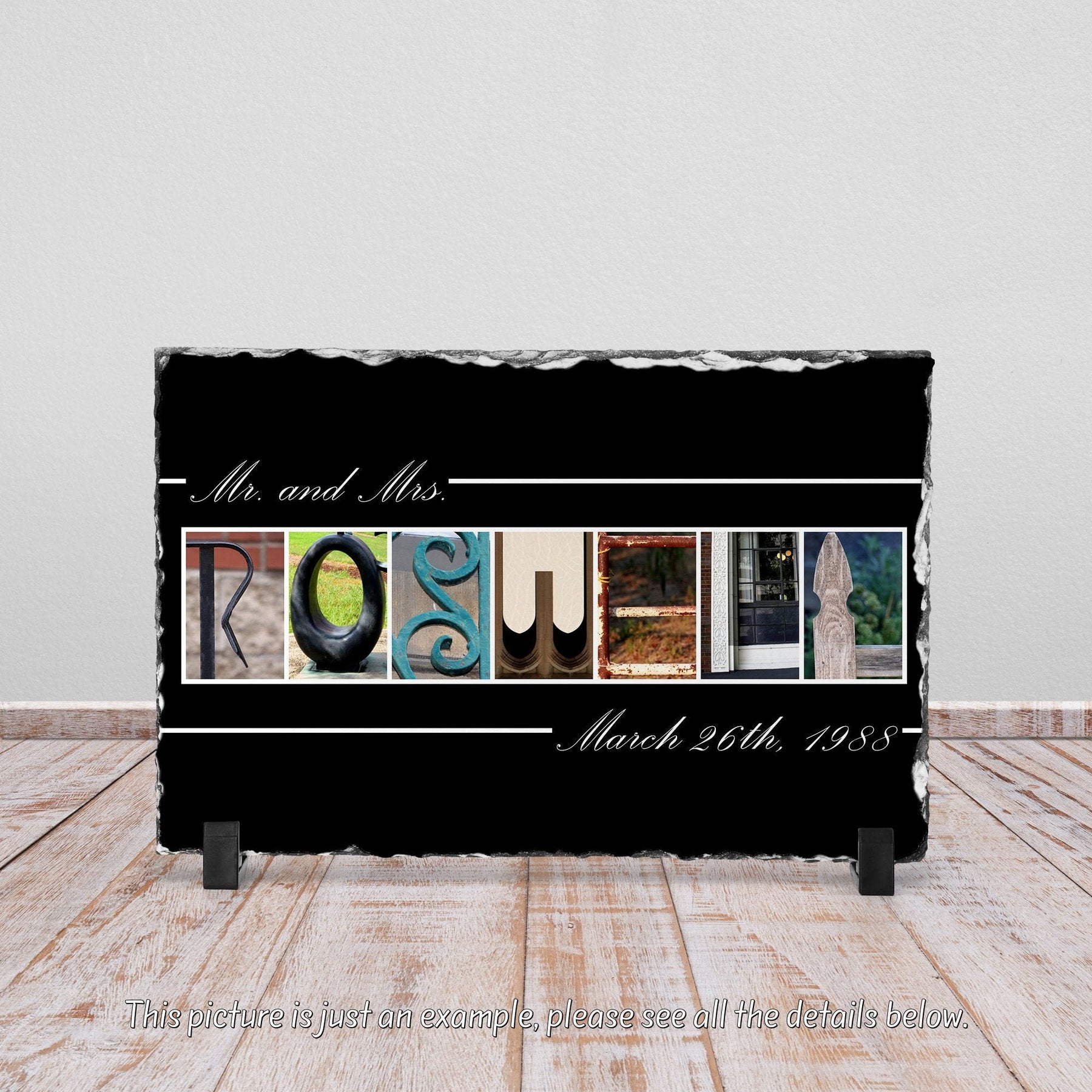 Elevate your home with our unique slate family sign, personalized just for you! An ideal house warming gift or for that 1st anniversary celebration. This bespoke family name sign is not just a wedding gift for mom, but also serves as a treasured mother-daughter gift, a meaningful godmother present, or a cherished bridal and wedding shower token. From celebrating a 50th anniversary to finding the right parent wedding gift, our custom couple creation captures the essence of every special moment. Order now and cherish forever.