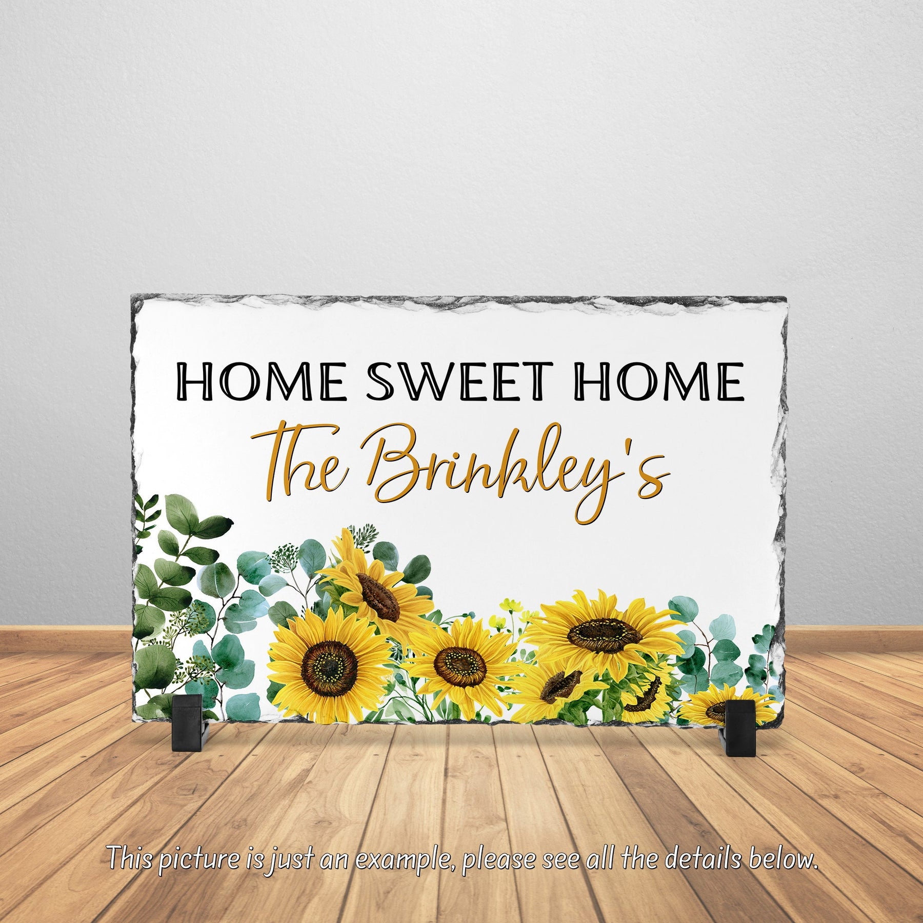 Introducing our beautiful Sunflower Print on Slate! This Family Sign, engraved with your chosen family name, is the ideal House Warming Gift or 1st Anniversary Gift. Looking for a unique Wedding Gift for Mom, a heartfelt Mother Daughter Gift, or a special Godmother Gift? This is it! Our Custom Couple Gift also serves as a thoughtful Bridal Shower or Wedding Shower Gift. Order now and make memories last on slate!