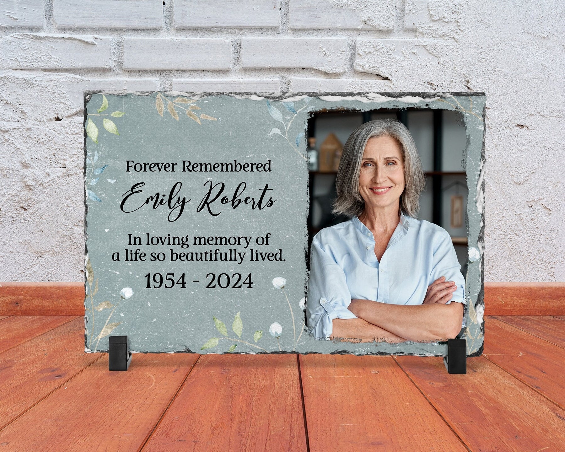 Honor your loved one with our "In Loving Memory" memorial plaque. This beautiful bereavement gift is fully customizable photo gift. Perfect for a celebration of life, our slate plaque serves as a heartfelt remembrance gift. Ideal as a sympathy gift, this memorial stone is a touching way to keep their memory alive. This memorial plaque provides a lasting tribute to their life.