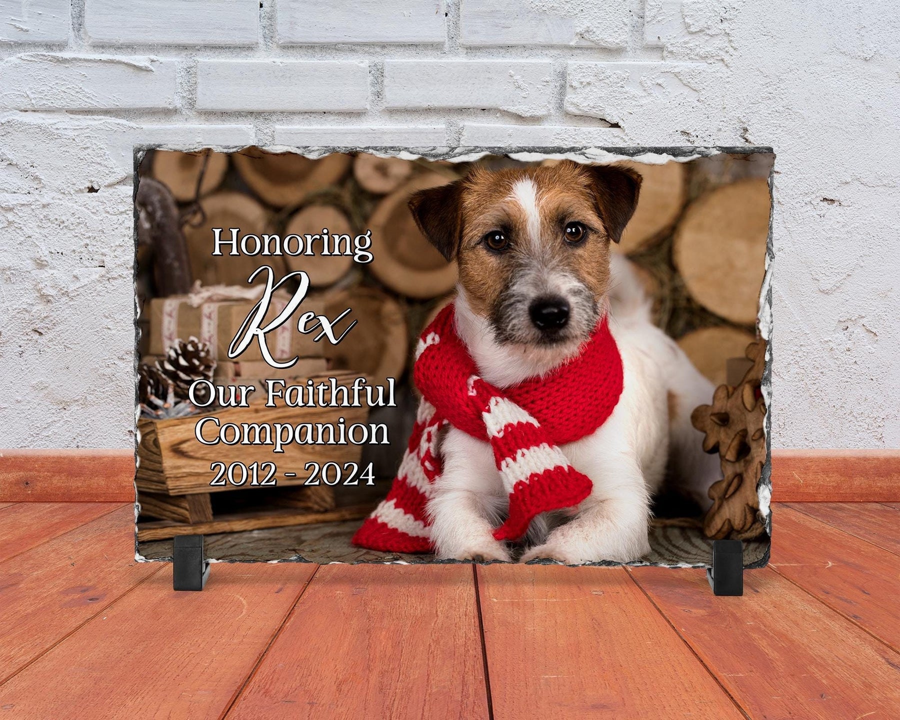 Commemorate your beloved pet with our In Loving Memory Slate Picture Frame. This timeless Pet Memorial piece makes a heartfelt Dog Memorial Gift or Cat Memorial for those grieving. Personalize it with a cherished photo, creating a unique Pet Photo Gift. Perfect as a Sympathy Gift or Remembrance Gift, it honors the journey of your pet across the Rainbow Bridge. Our handcrafted slate frame is a beautiful way to celebrate the life of your furry friend and makes a meaningful Pet Loss Gift or Pet Memorial Gift.