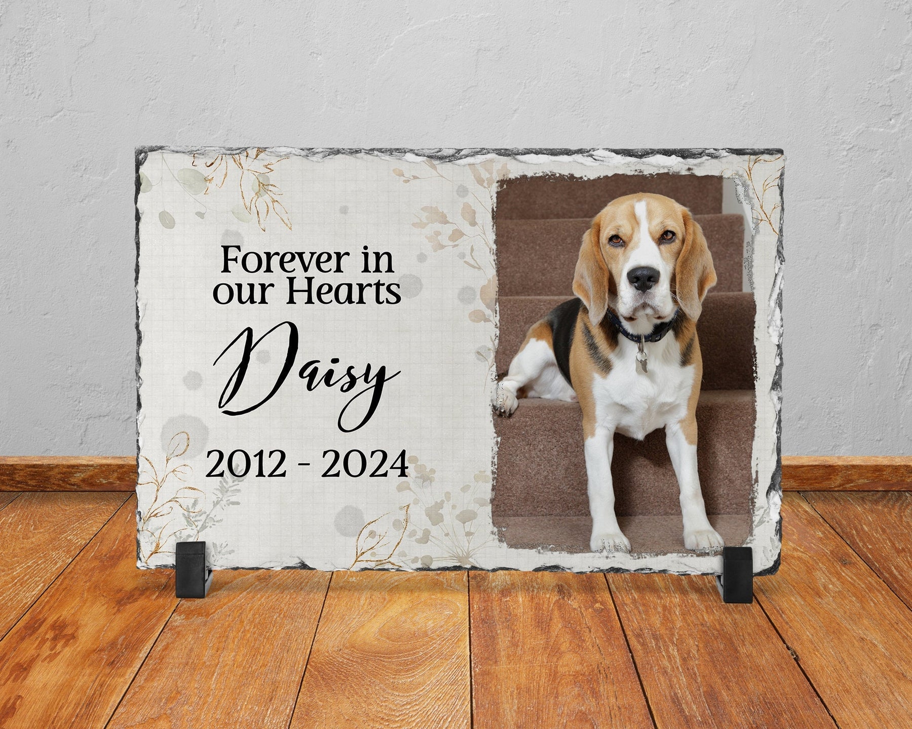 Commemorate your beloved pet with our In Loving Memory Slate Picture Frame. This timeless Pet Memorial piece makes a heartfelt Dog Memorial Gift or Cat Memorial for those grieving. Personalize it with a cherished photo, creating a unique Pet Photo Gift. Perfect as a Sympathy Gift or Remembrance Gift, it honors the journey of your pet across the Rainbow Bridge. Our handcrafted slate frame is a beautiful way to celebrate the life of your furry friend and makes a meaningful Pet Loss Gift or Pet Memorial Gift.