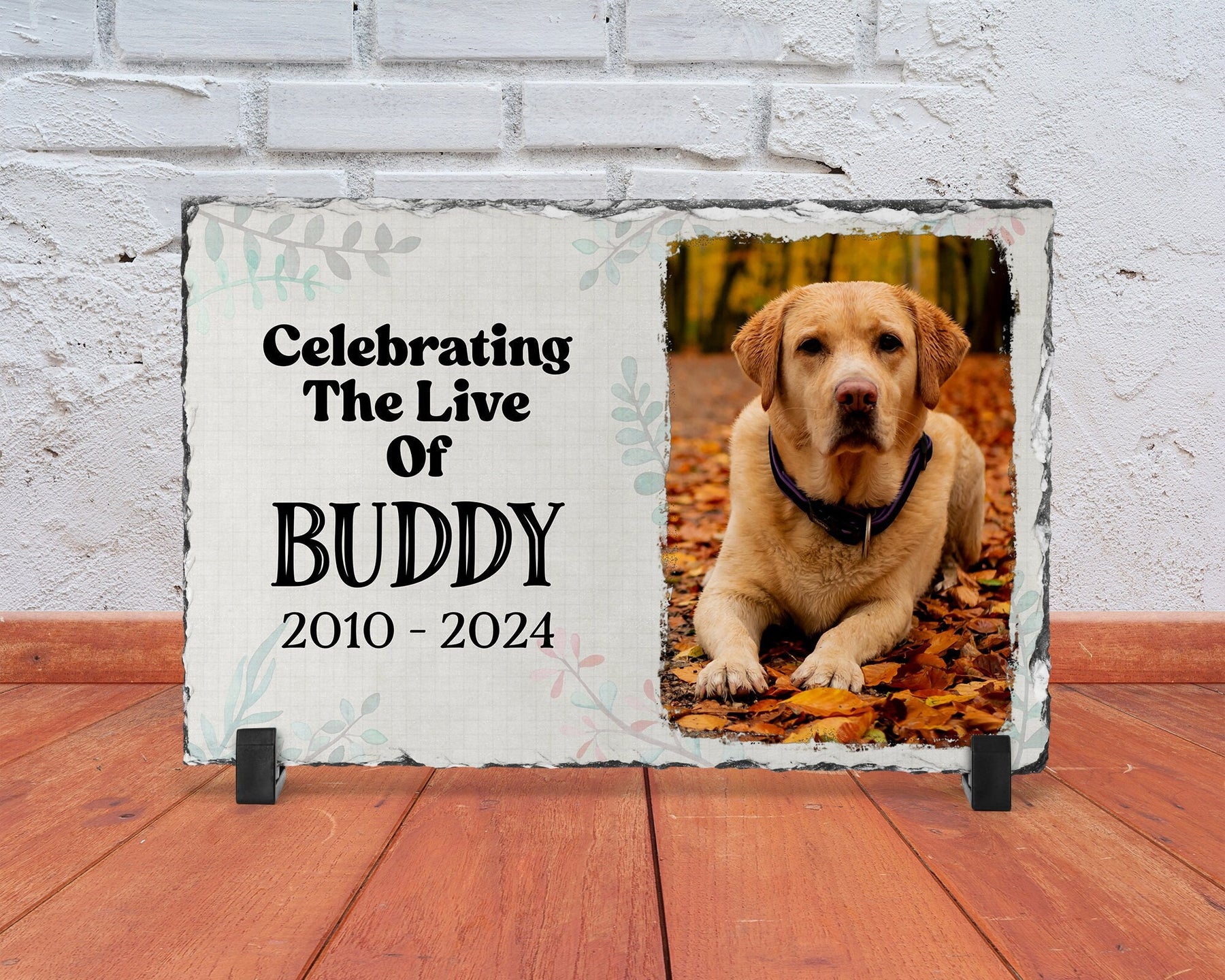 Commemorate your beloved pet with our In Loving Memory Slate Picture Frame. This timeless Pet Memorial piece makes a heartfelt Dog Memorial Gift or Cat Memorial for those grieving. Personalize it with a cherished photo, creating a unique Pet Photo Gift. Perfect as a Sympathy Gift or Remembrance Gift, it honors the journey of your pet across the Rainbow Bridge. Our handcrafted slate frame is a beautiful way to celebrate the life of your furry friend and makes a meaningful Pet Loss Gift or Pet Memorial Gift.