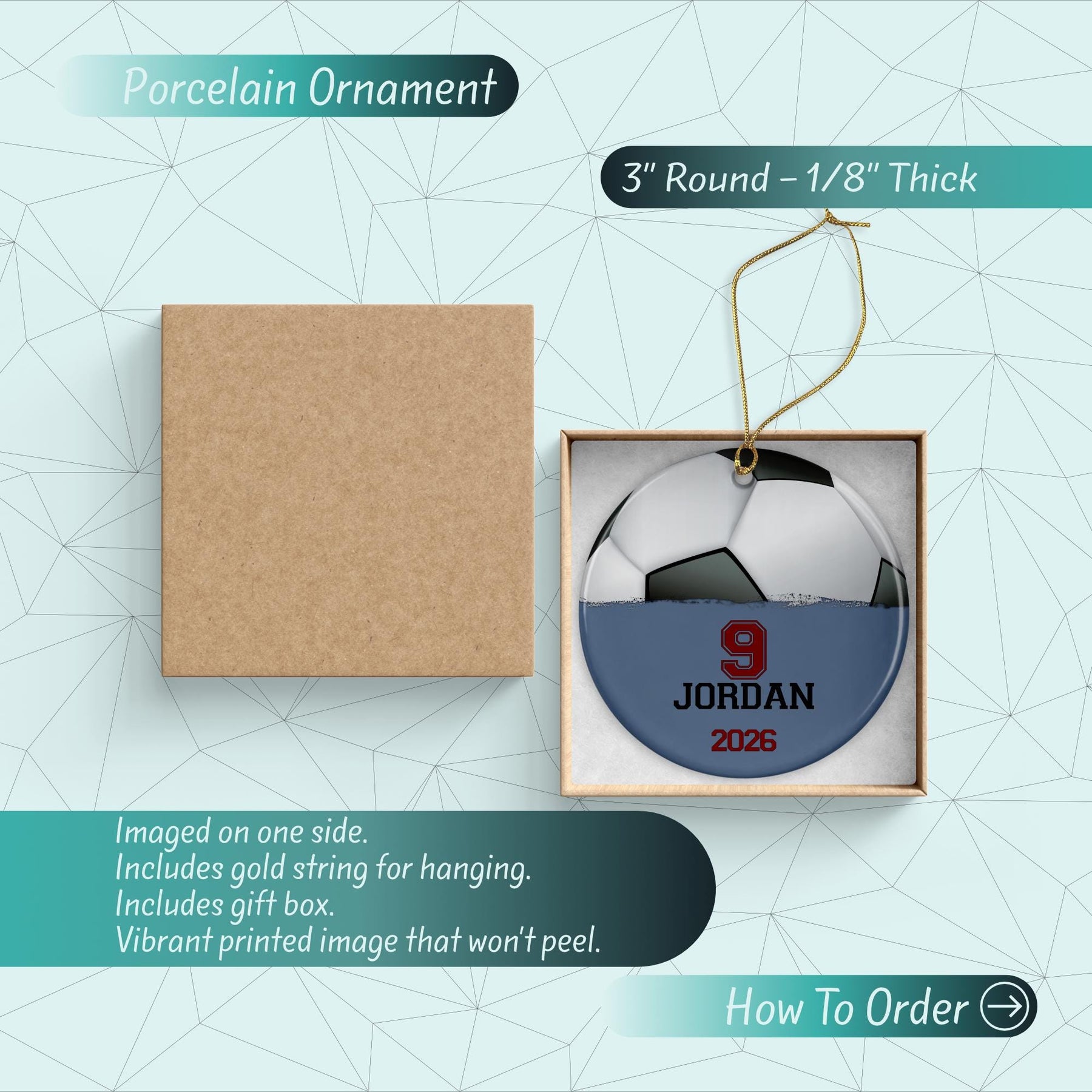 So, honor your graduating senior or soccer enthusiast with this versatile ornament, where Christmas cheer meets soccer passion in a memorable blend. Order now and celebrate the holiday season with this exclusive tribute.