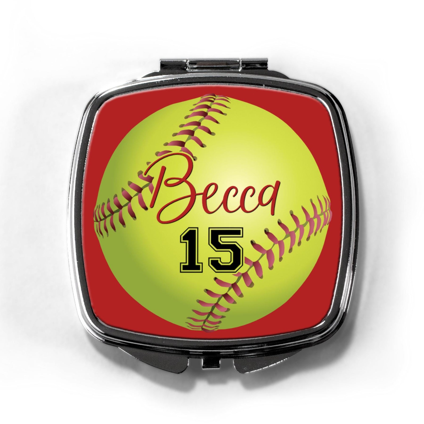 Looking for the perfect Softball gift or Softball Coach gift? This personalized compact mirror is the ideal choice! Featuring a sleek design, it’s perfect for makeup touch-ups on the go. Whether as a Softball award, senior gift, or thoughtful stocking stuffer, this makeup compact is a unique and practical keepsake. Celebrate your favorite softball fan or coach with this handy mirror compact that fits easily in any bag. A memorable gift for any occasion!