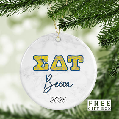 Sigma Delta Tau Sorority Ornament: Custom College Merch for Big Little Sorority Gifts