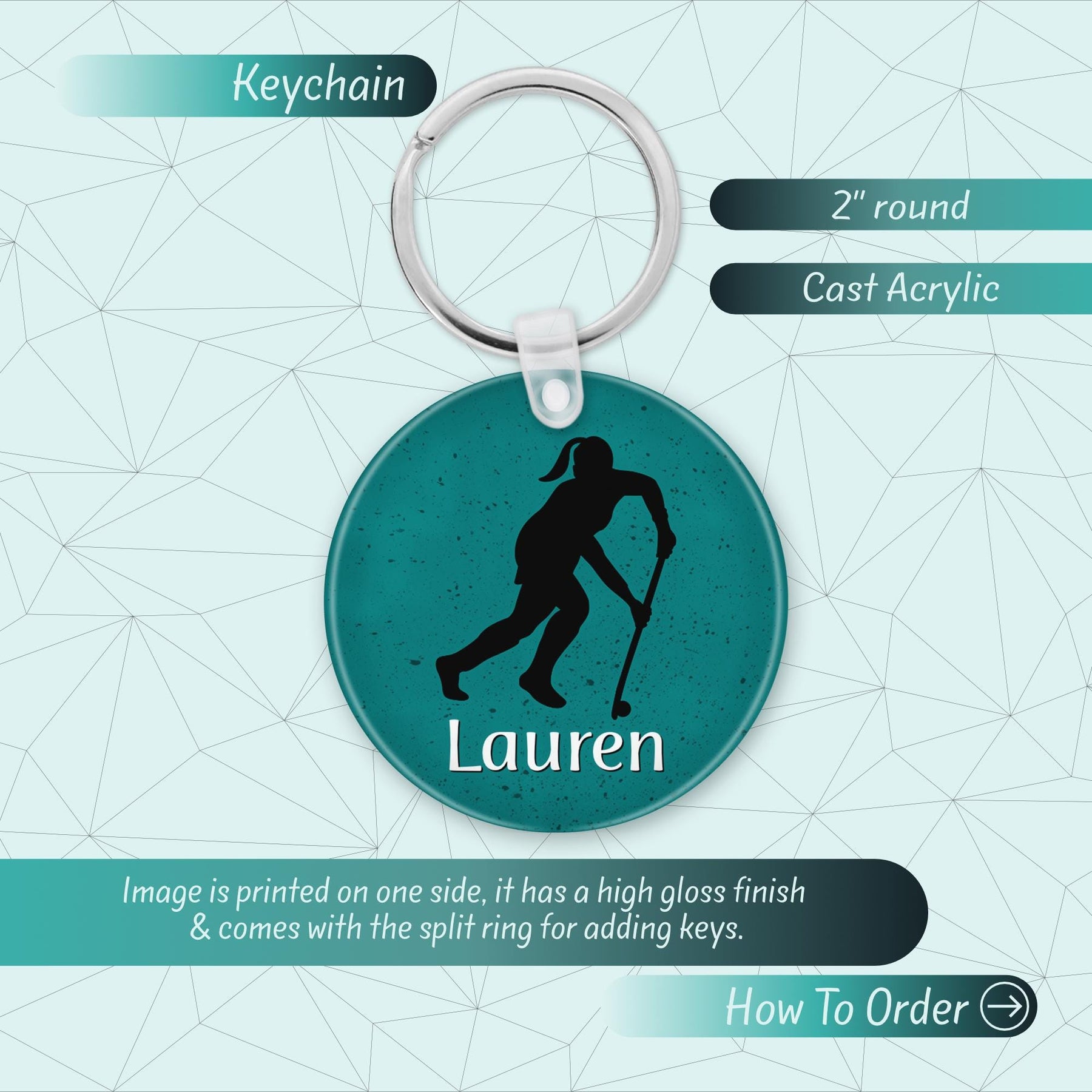 Personalized Field Hockey Keychain: Acrylic Hockey Player Gift