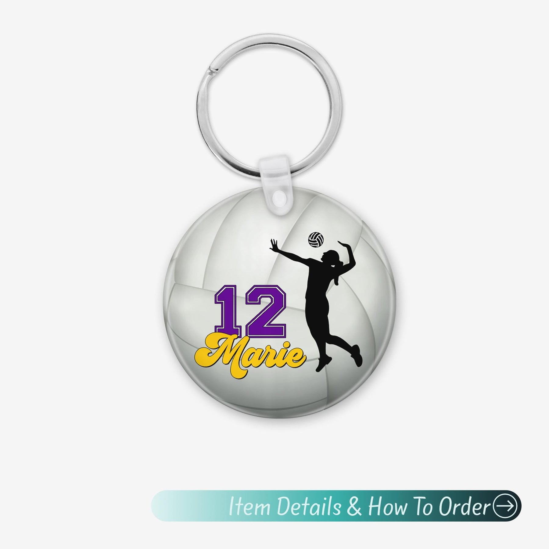Elevate your game with our custom volleyball keychain, the ideal gift for volleyball coaches, team members, and proud volleyball moms. Designed for the travel team enthusiast, this keychain is a stylish addition to any volleyball bag or set of car keys. Whether you're celebrating a team's victory, appreciating a dedicated coach, or simply showing off your love for the sport, this sports keychain, customizable to your preference, is a token of passion and dedication. Perfect for any volleyball event, it's a practical and personal way to keep the spirit of the game alive, on and off the court.