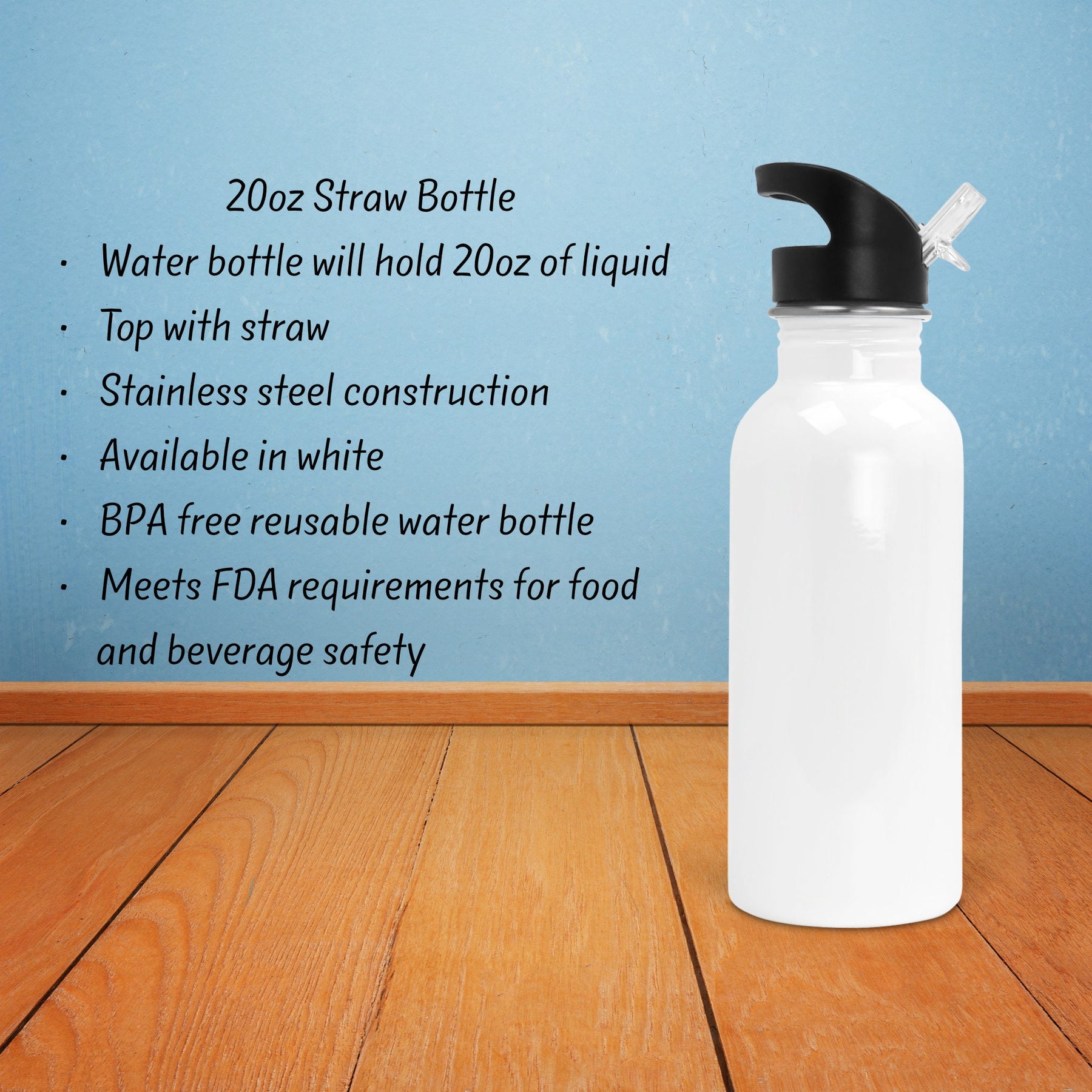 Our 20oz Straw Bottle combines health and style. The BPA-free, stainless steel bottle features a straw top for easy sipping. The directly printed image on the white body enhances its visual appeal.