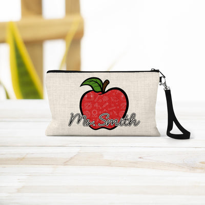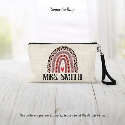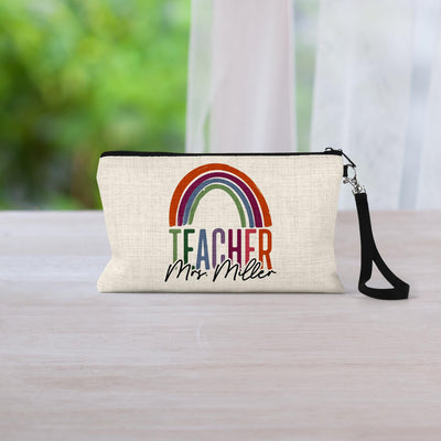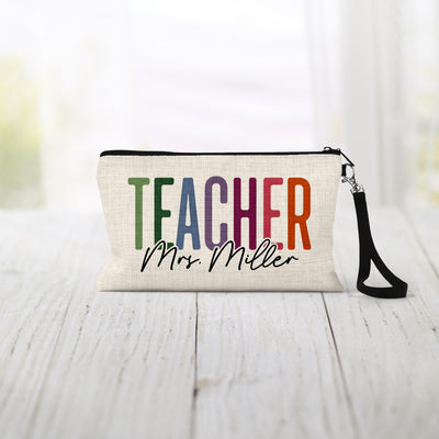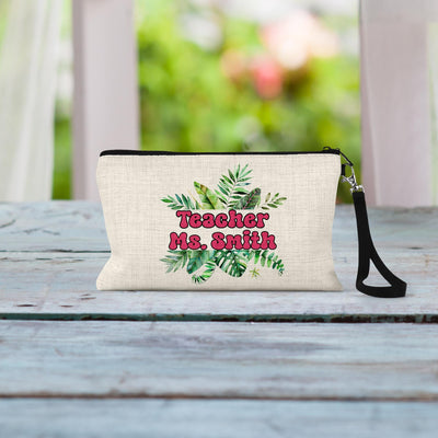 Personalized Teacher Cosmetic Bag: Linen Zipper Pouch