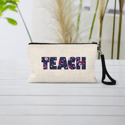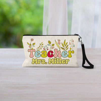 Personalized Teacher Cosmetic Bag: Floral Linen Zipper Pouch
