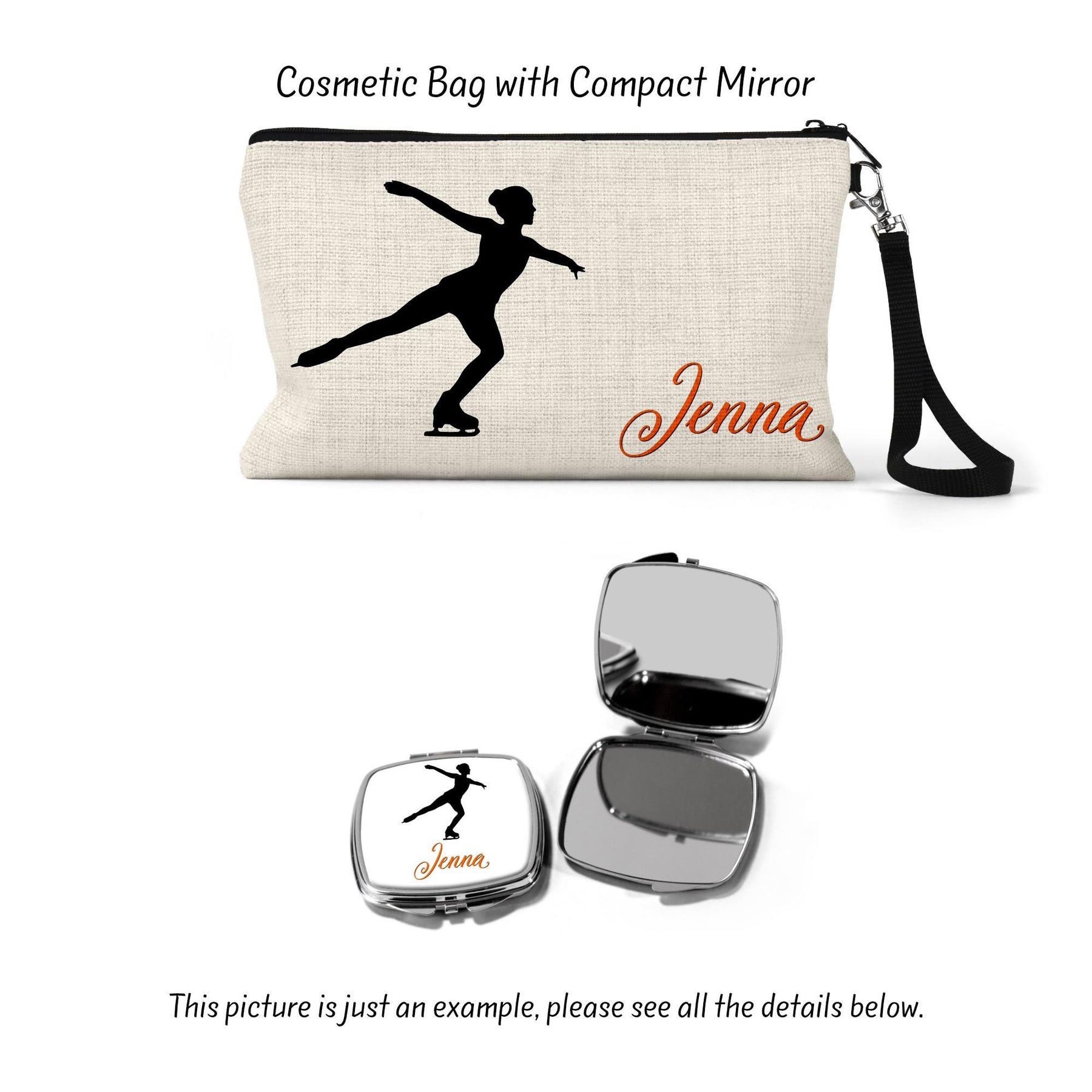 Celebrate your love for Figure Skating with this stylish Cosmetic Bag, ideal for any Figure Skater or Ice Skating Mom. Use it as a Makeup Organizer, Custom Makeup Bag, or a Toiletry Bag for women. This Monogram Makeup Bag is a thoughtful addition to your collection or makes a perfect Figure Skating Gift. Compact yet spacious, it’s perfect for storing essentials while on the go. Whether for practice or competition, this Makeup Bag is a must-have for all Figure Skating Moms and enthusiasts!