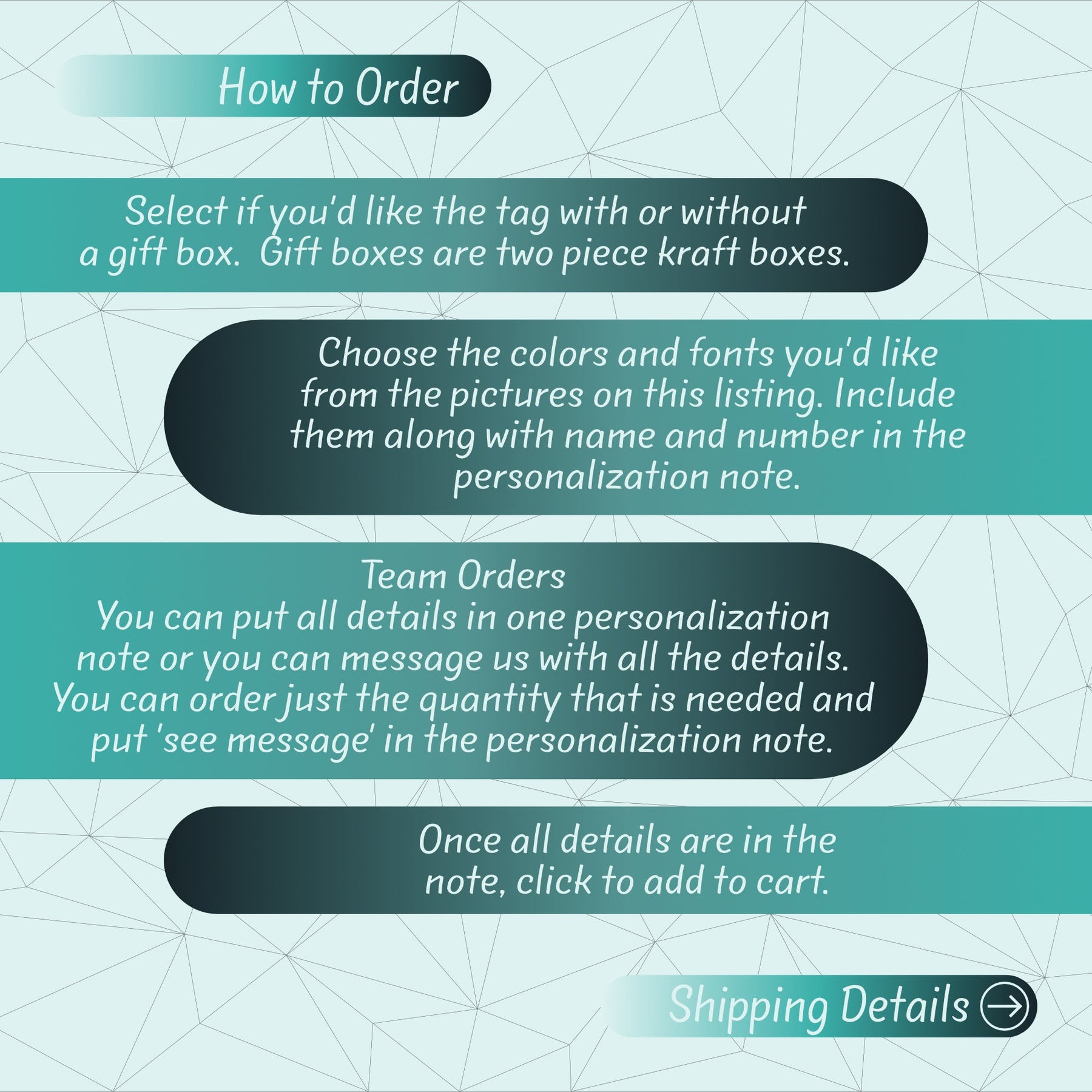 4. Include in the notes the customized names and/or initials that you'd like.