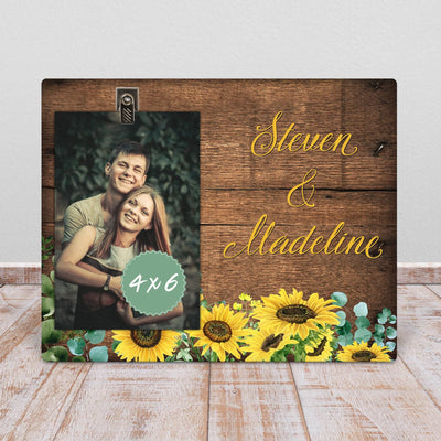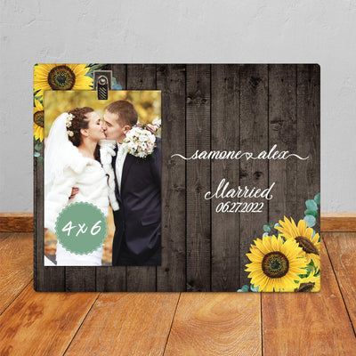 Sunflower Wedding Picture Frame: 4x6 Photo Clip, Newlywed Gift