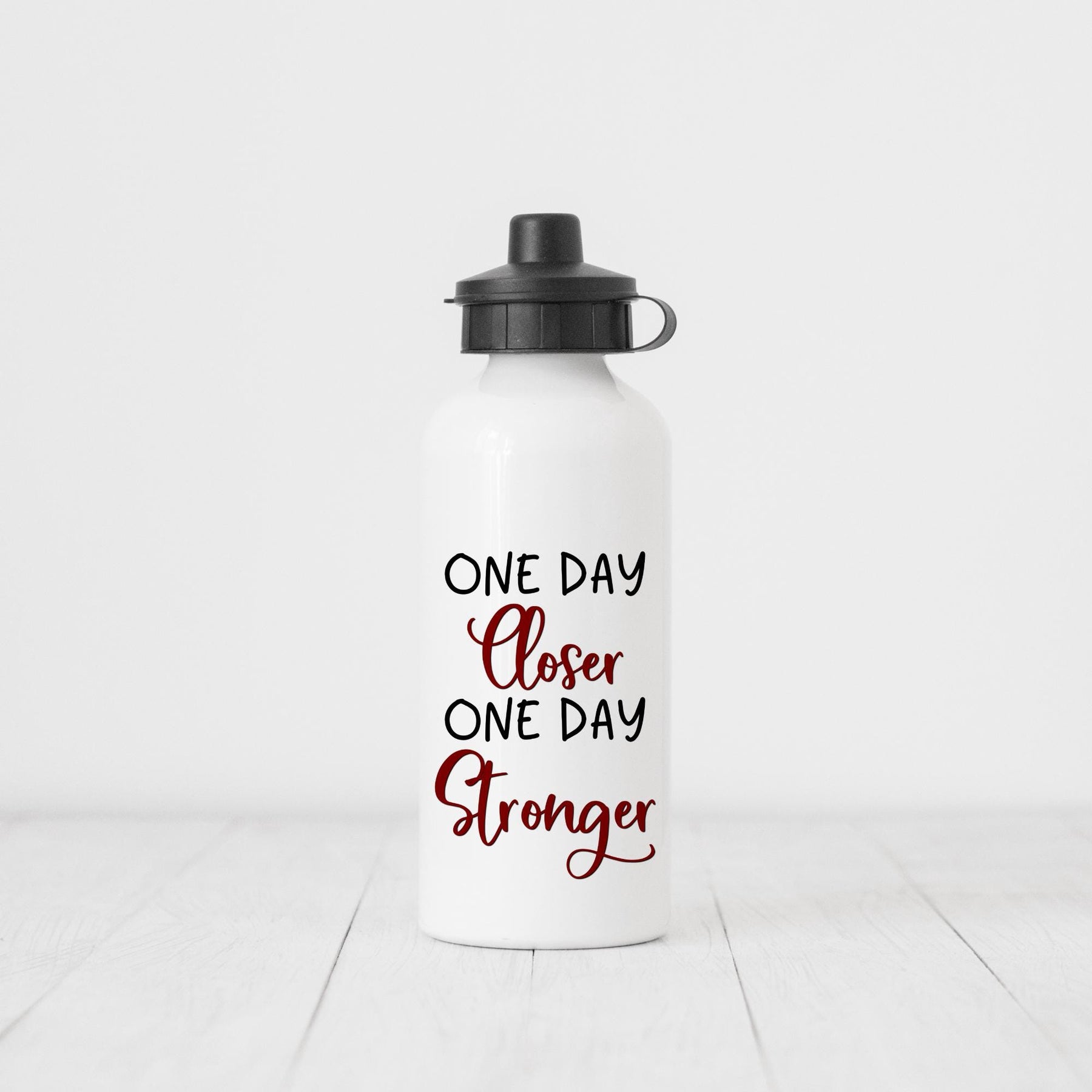 Enjoy optimal hydration with our 20oz Sport Bottle. Made from durable aluminum, this white bottle comes with two interchangeable tops. The unique image printed directly on it adds a personalized touch.