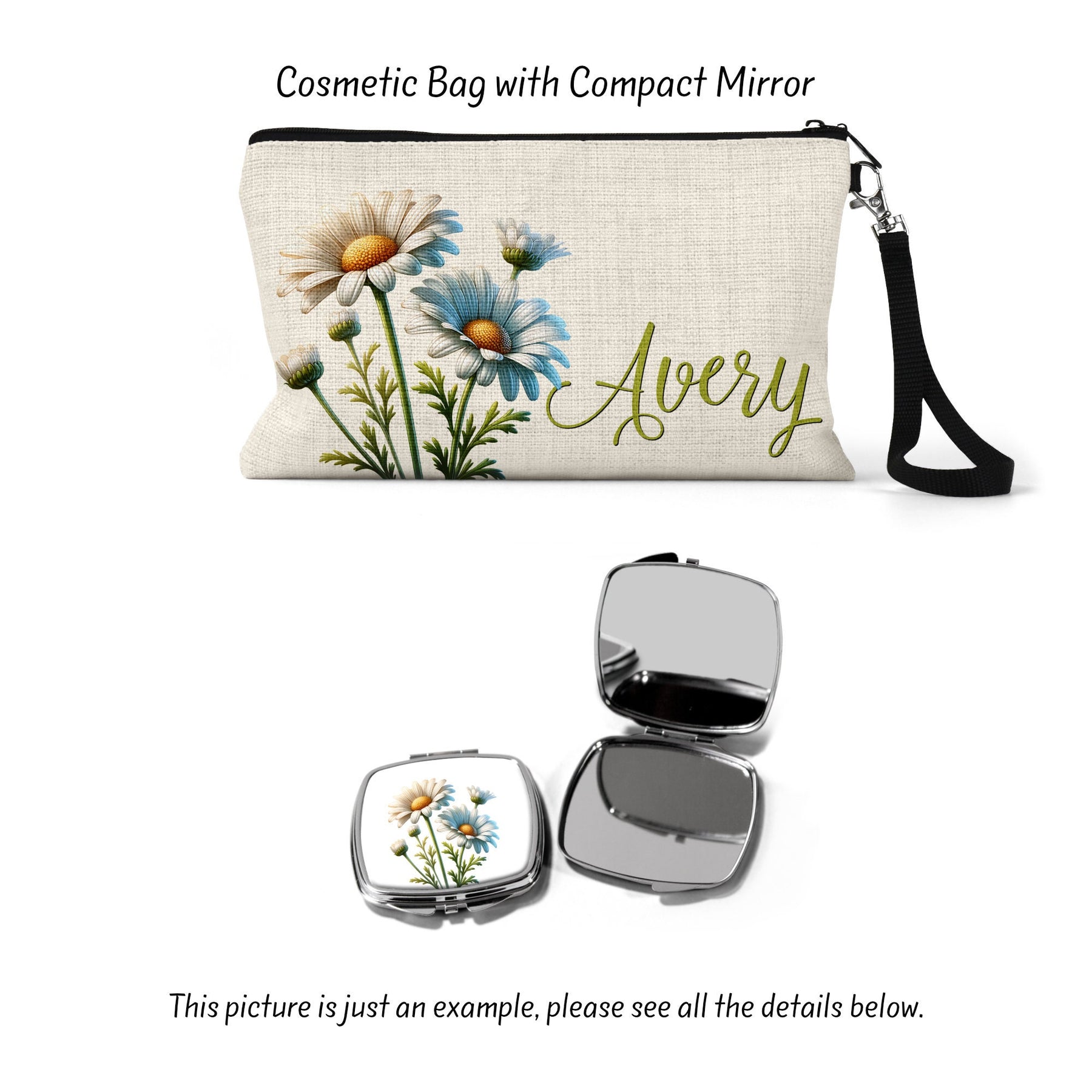 Celebrate April's birth flower with our elegant Daisy zipper pouch. This versatile bag is adorned with beautiful spring flowers, making it an ideal bridesmaid gift or birthday present. Use it as a makeup bag, cosmetic bag, travel bag, toiletry bag, pencil bag, or make up bag. This charming birth month flower pouch is perfect for organizing all your essentials in style.