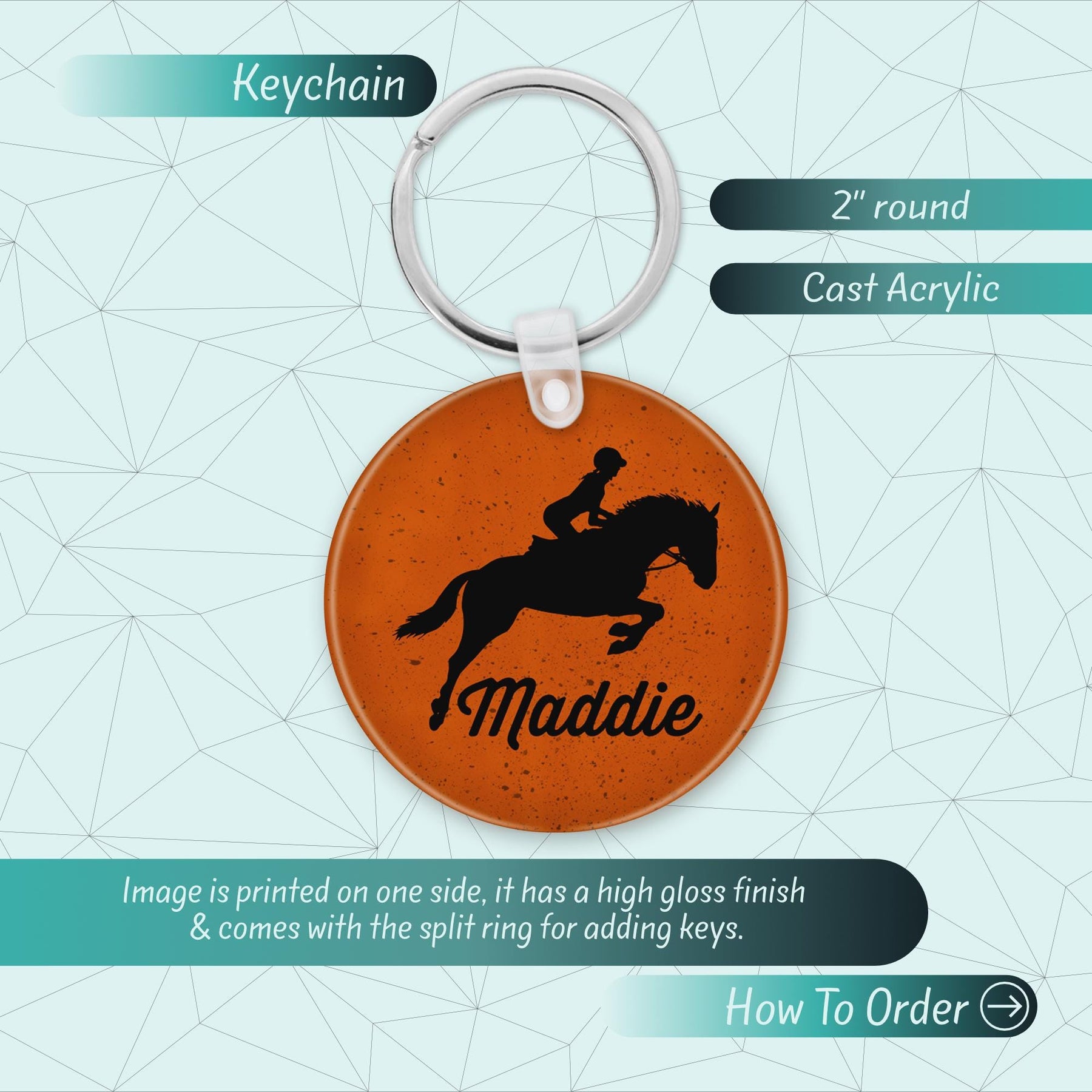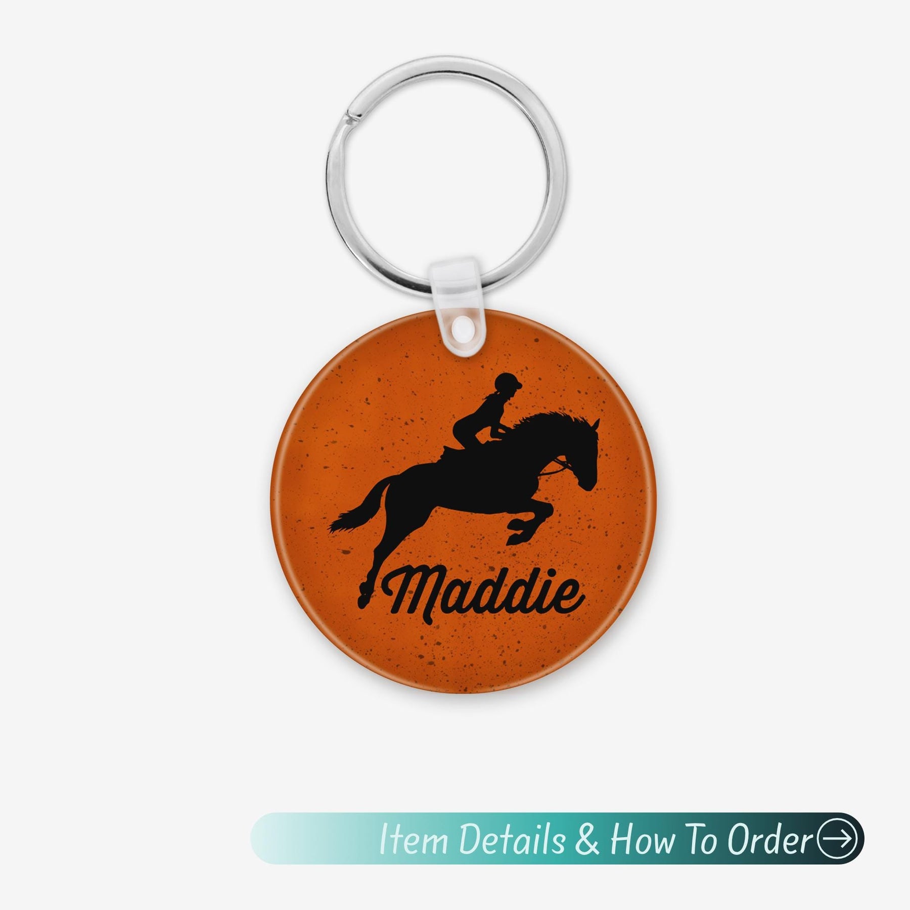 Discover the ultimate gift for horse lovers and equestrians with our beautifully crafted faux poly leather keychain. This exquisite piece is not just a key chain; it's a symbol of passion for horseback riding and the equestrian lifestyle. Designed with horse enthusiasts in mind, it makes an exceptional equestrian gift, ideal for coaches, riders, and anyone who cherishes the bond with these magnificent creatures. Whether it's for keeping car keys handy or adding a touch of equestrian flair to everyday items, this horse keychain embodies the spirit of horse riding gifts. A thoughtful and unique horse lover gift, it's the perfect way to celebrate the joy of horseback riding.