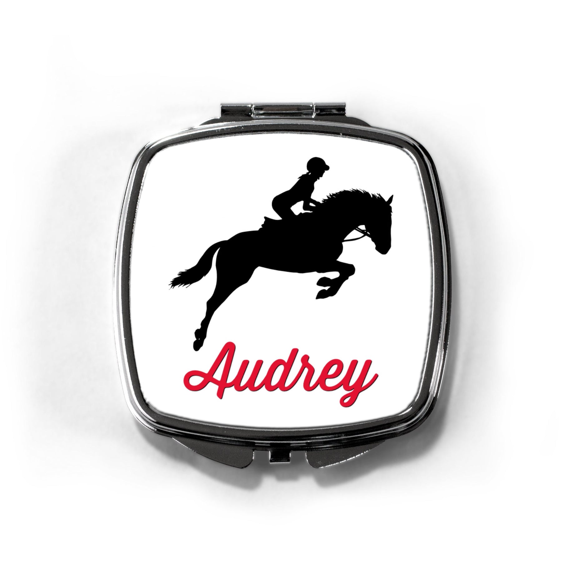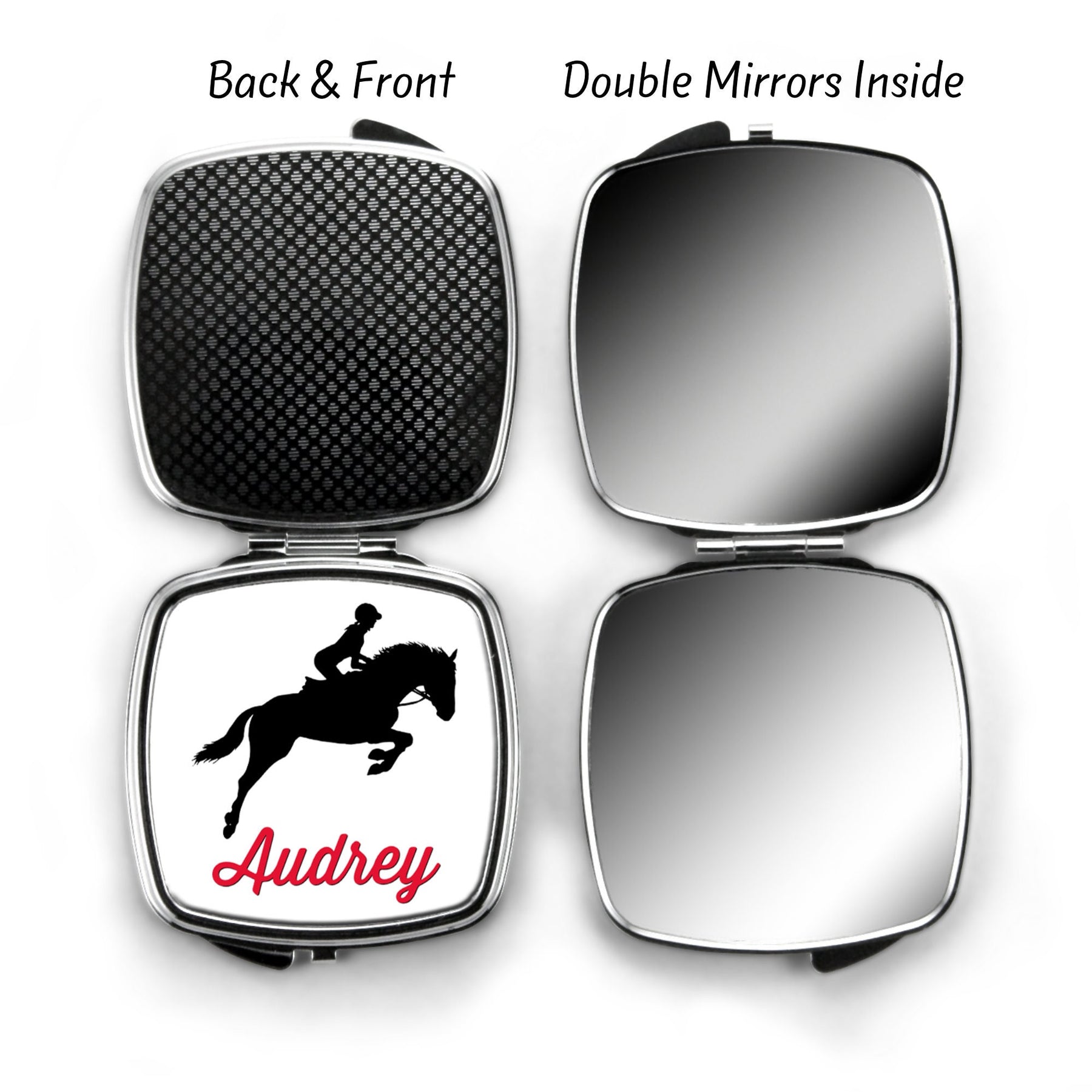 Elevate your grooming routine with our exquisite Equestrian Makeup Mirror, a must-have for every horse enthusiast. Crafted with passion and precision, this pocket-sized compact mirror embodies the grace of horseback riding. Ideal for on-the-go touch-ups, it's a thoughtful present for coaches, horse lovers, and girls who adore these majestic creatures. Whether for the stable or the city, this hand mirror ensures you always look your best with its compact design and crystal-clear reflection. Discover the perfect blend of style and functionality in our equestrian-inspired mirror today!