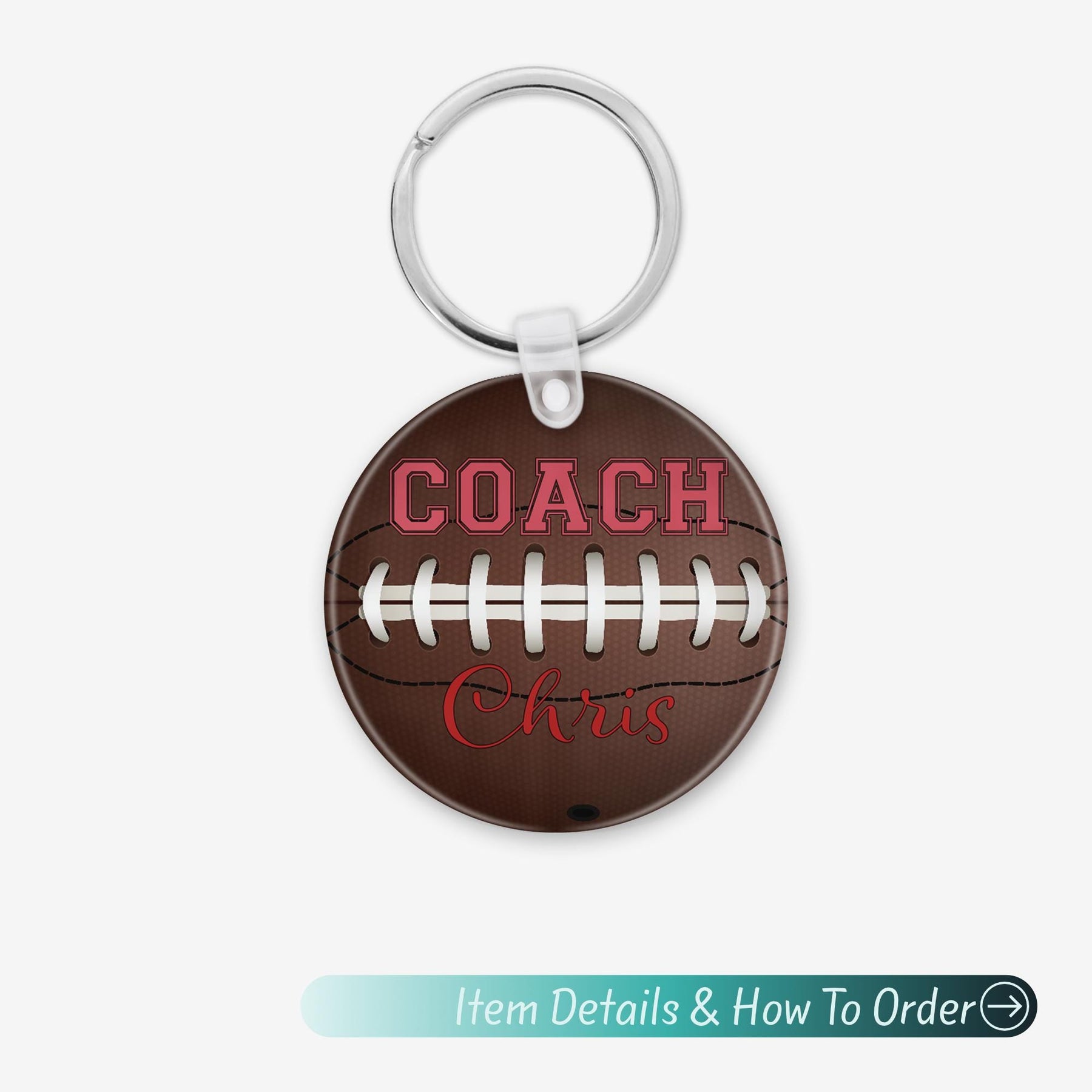 Score a touchdown with this football keychain, the ultimate football gift for players, coaches, and teams! This sports key chain is a great football coach gift, team gift, or party favor. Personalize this custom key chain for a unique touch. Whether for a teen gift or a coach gift, this stylish football key chain is a fun and practical way to show team pride. Perfect for keys, bags, or backpacks—ideal for any football fan!