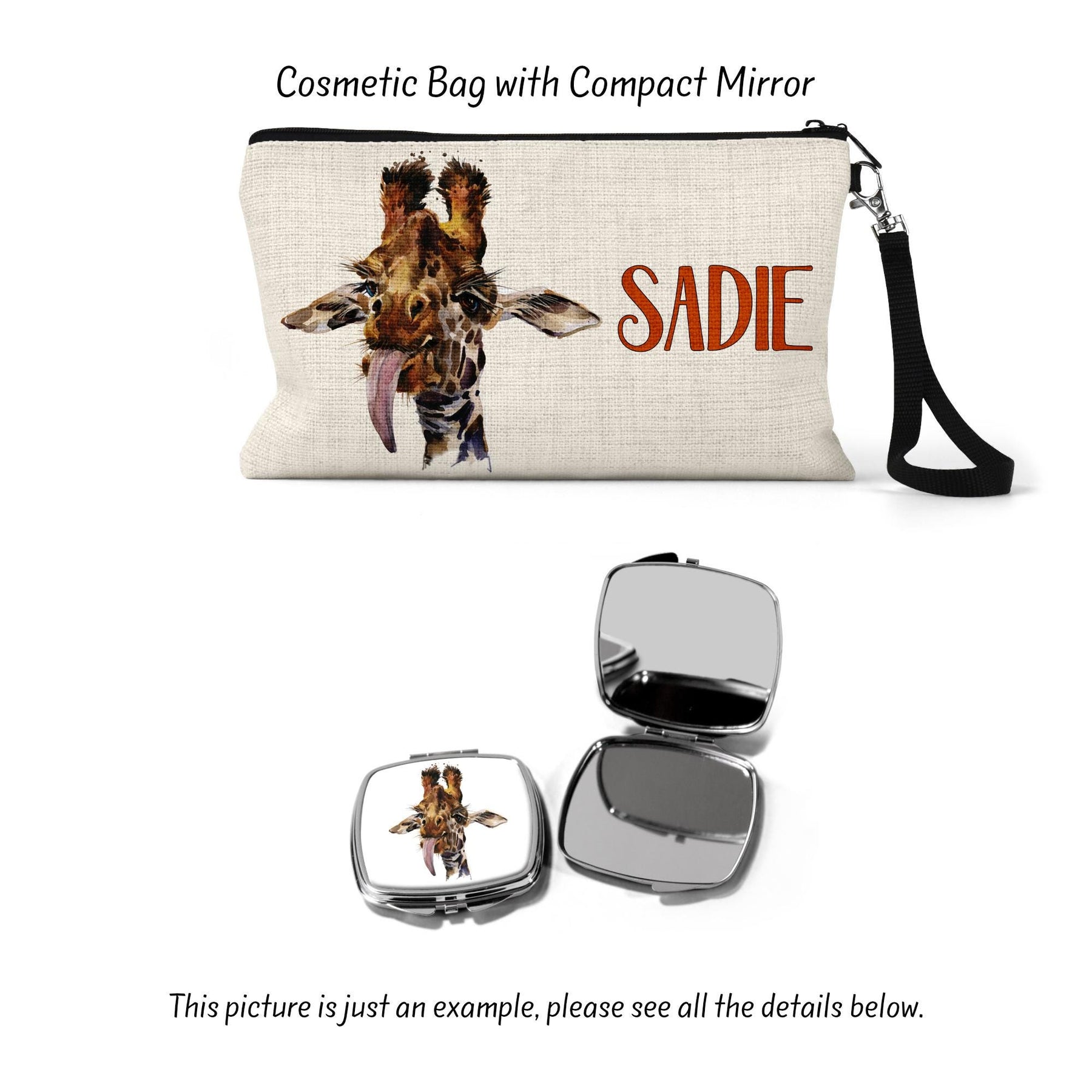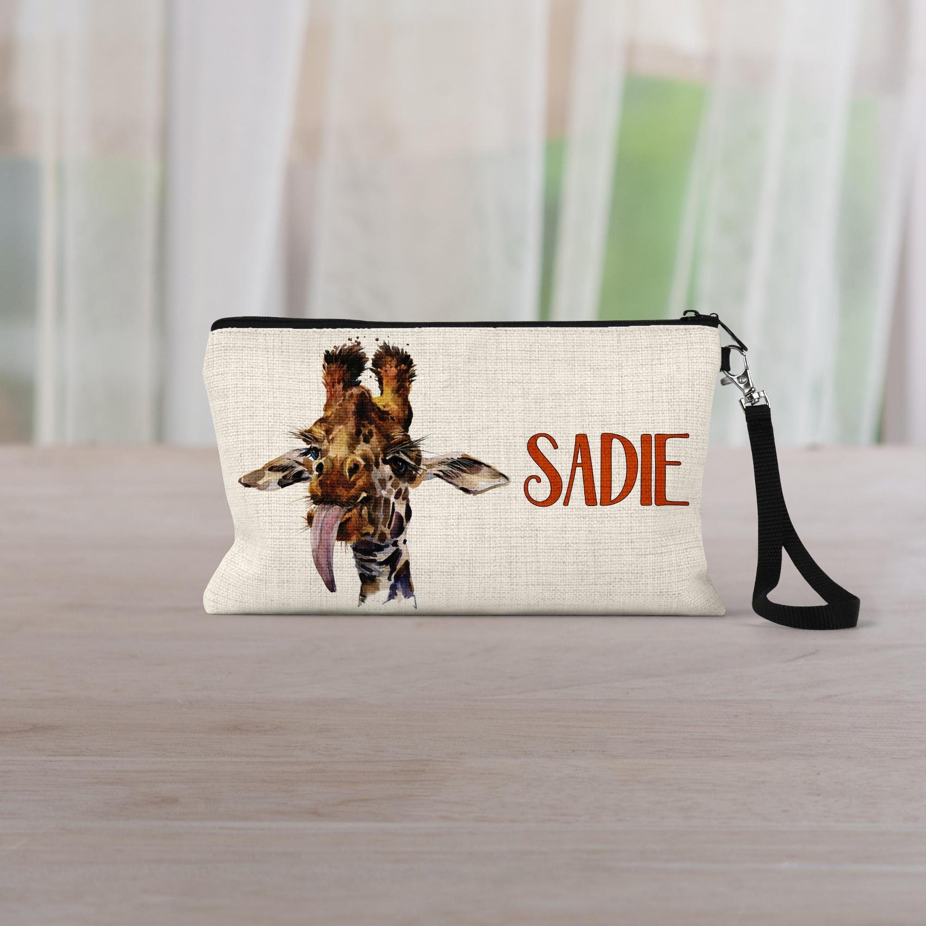 Delight the giraffe lover in your life with this adorable custom makeup bag! Perfect as a wife gift, girlfriend gift, or best friend gift, this makeup bag features a charming giraffe design. Use it as a cosmetic bag, makeup organizer, or toiletry bag for women. This make up bag is both stylish and practical, making it an ideal giraffe gift for any occasion.