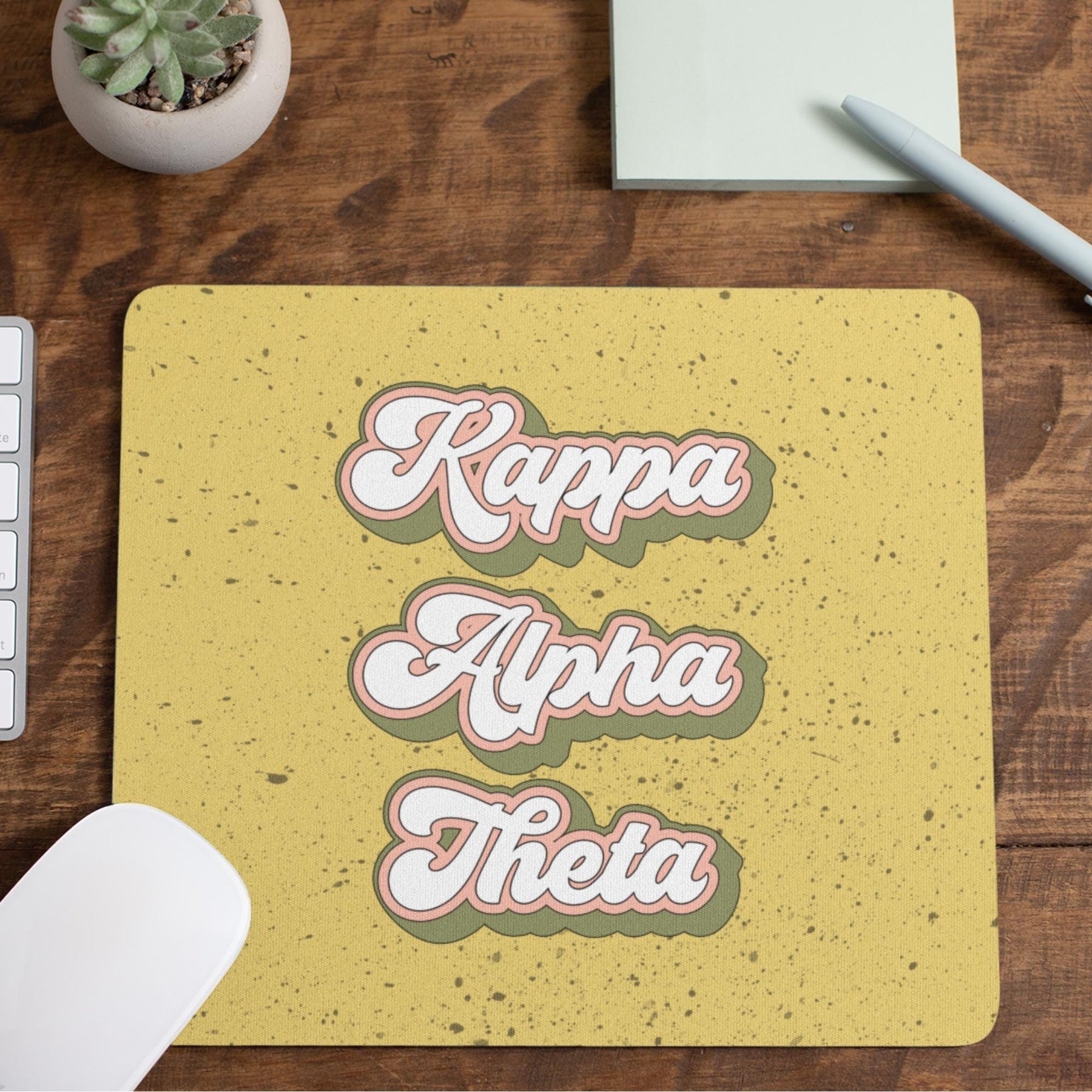 Celebrate your Kappa Alpha Theta pride with this custom sorority mousepad! Ideal for Big Little Sorority exchanges, this mousepad is a must-have desk accessory for any Greek life sister. Show off your sorority letters in style while enhancing your workspace with this unique desk decor. It's the perfect sorority gift for new members or as a thoughtful addition to your sorority merch collection. Make it your own and add a personal touch to your Greek gifts today!