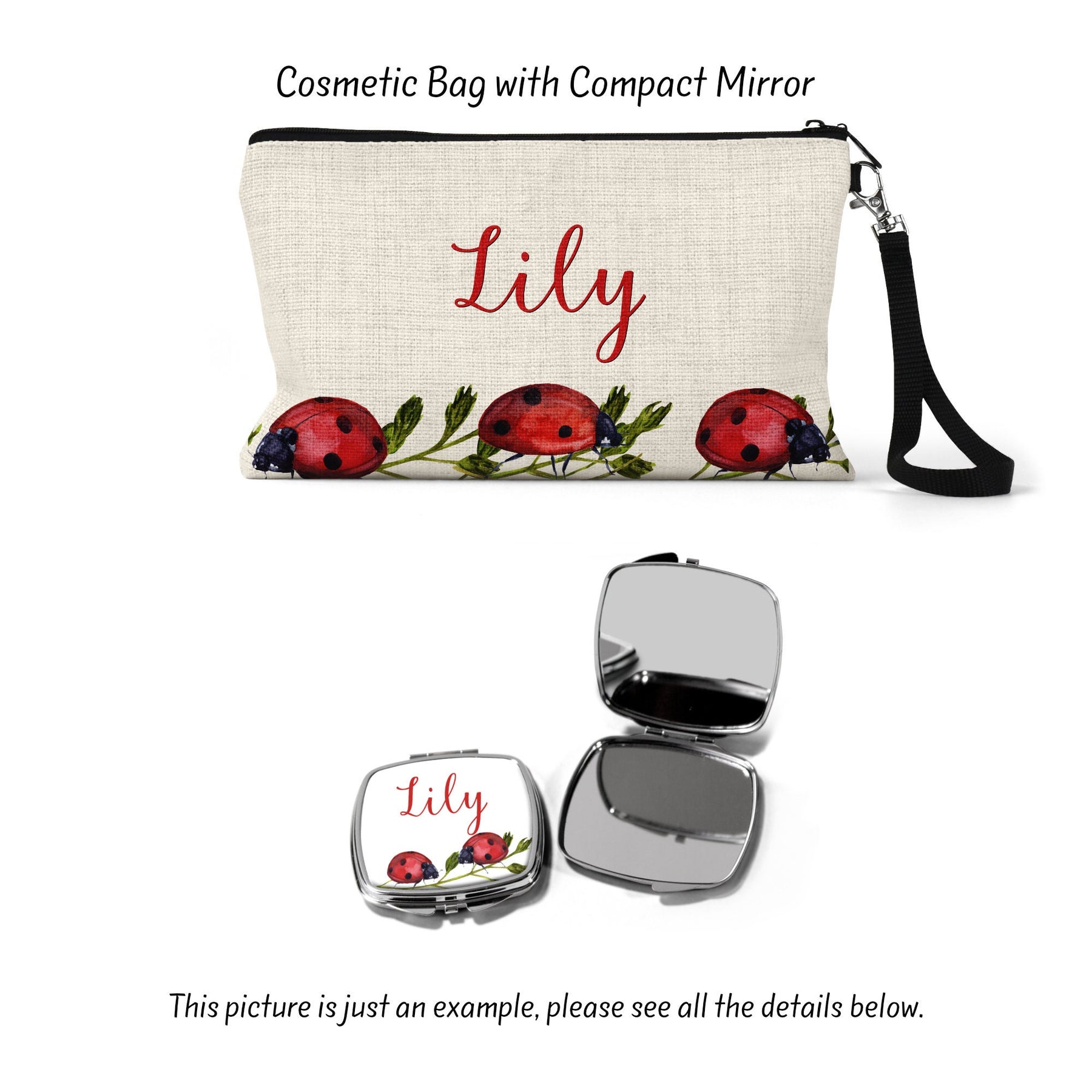 Discover the ultimate personalized present with our Lady Bug Custom Makeup Bag! Ideal for every occasion, from a thoughtful Birthday Gift to a unique Wife Gift, and the most heartfelt Gift For Mom. Celebrate your special bridesmaids with this charming Wedding Bag, or show appreciation with a Teacher Gift. This versatile Cosmetic Bag doubles as a delightful Party Favor. Its enchanting Lady Bug design makes it a standout Makeup Bag for every lady. Make it uniquely hers - a Custom Makeup Bag designed to bring joy and organization to her daily routine.