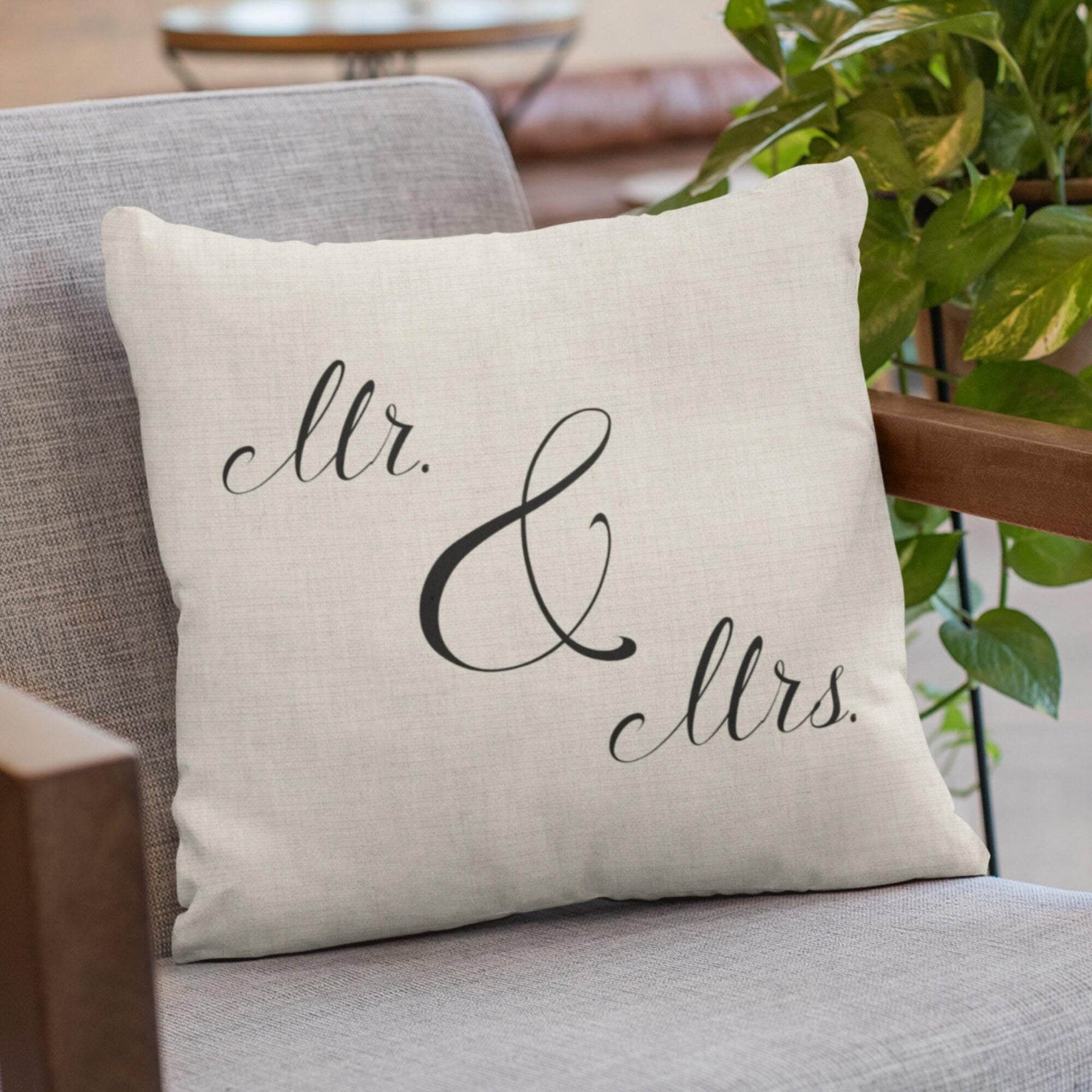 Celebrate love with our 'Mr and Mrs' Custom Throw Pillow Covers! A perfect Newlywed or Engagement Gift, these decorative pillows can also be filled with our premium Pillow Inserts. Our Customizable Pillows are an ideal New Home Gift or a thoughtful Realtor Gift. Surprising your Girlfriend or your favorite Couple has never been easier! Just Married? Our pillows can add that extra special touch to your new life together.