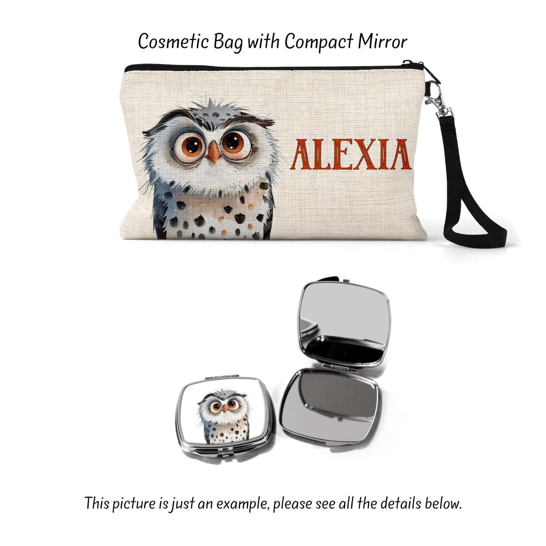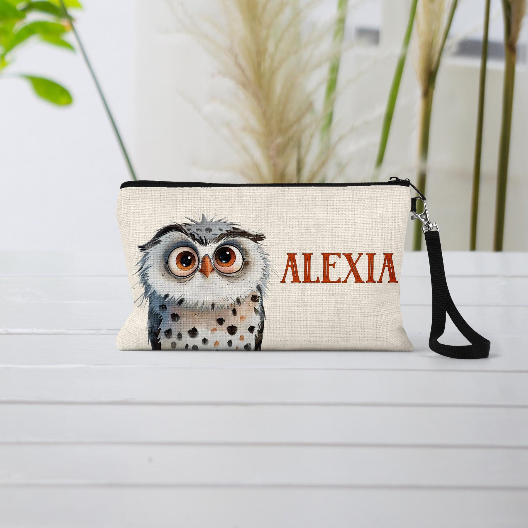 Surprise the owl lover in your life with this fun custom makeup bag! Perfect as a wife gift, girlfriend gift, or best friend gift, this makeup bag showcases a playful owl design. Ideal as a cosmetic bag, makeup organizer, or toiletry bag for women, this make up bag combines style and functionality. This charming owl gift is sure to bring a smile to any recipient's face.