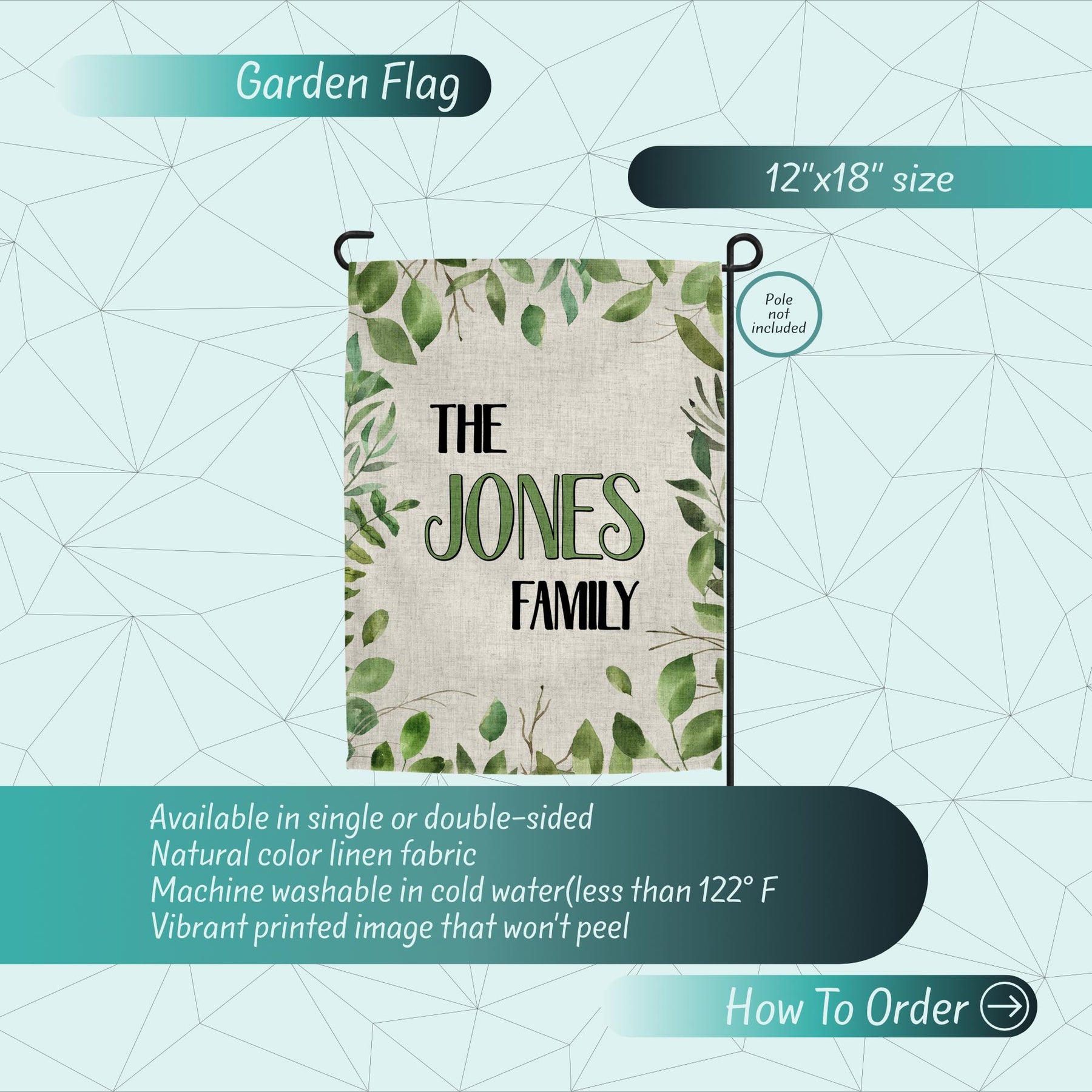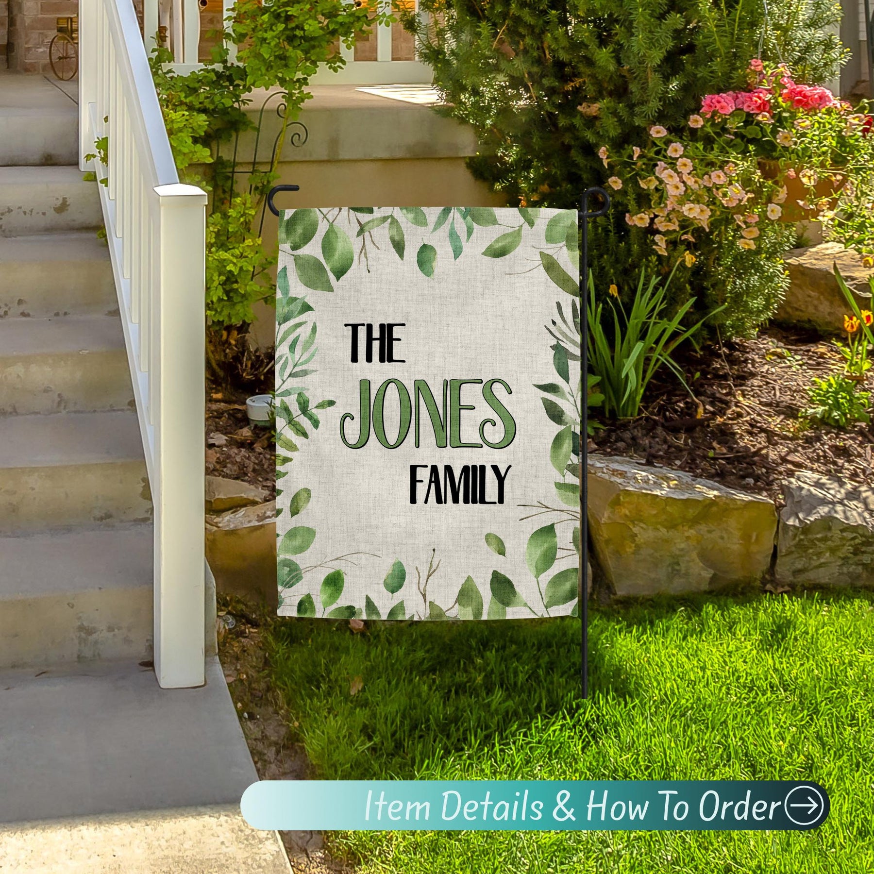 Welcome guests in style with this Custom Garden Flag featuring your Family Name Sign! Perfect for Easter Decor, Summer Style, or everyday Porch Decor, this Last Name Sign adds charm to your Yard Art and Garden Decoration. A lovely Gardening Gift or thoughtful housewarming idea, this Welcome Sign pairs beautifully with a Door Wreath for a complete look. Whether you're updating your Yard Decor or gifting a Custom Flag to someone special, this personalized flag brings warmth and personality to any outdoor space.