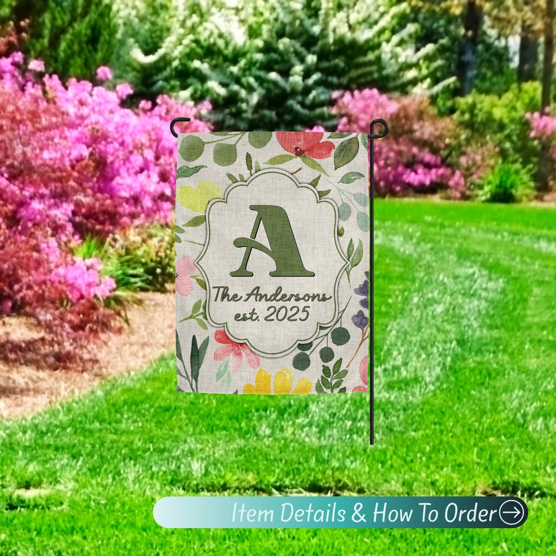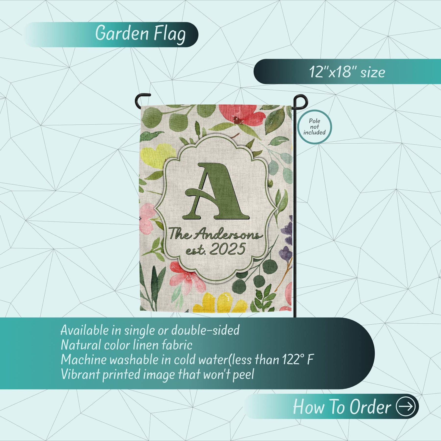 Welcome guests in style with this Custom Garden Flag featuring your Family Name Sign! Perfect for Easter Decor, Summer Style, or everyday Porch Decor, this Last Name Sign adds charm to your Yard Art and Garden Decoration. A lovely Gardening Gift or thoughtful housewarming idea, this Welcome Sign pairs beautifully with a Door Wreath for a complete look. Whether you're updating your Yard Decor or gifting a Custom Flag to someone special, this personalized flag brings warmth and personality to any outdoor space.