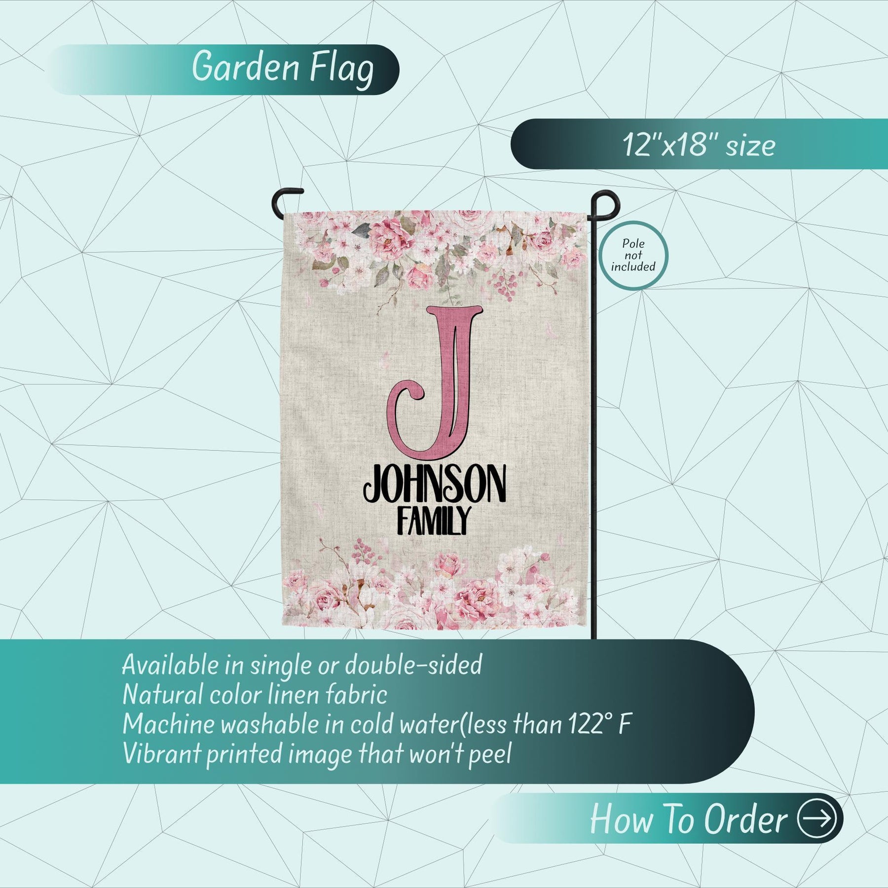 Welcome guests in style with this Custom Garden Flag featuring your Family Name Sign! Perfect for Easter Decor, Summer Style, or everyday Porch Decor, this Last Name Sign adds charm to your Yard Art and Garden Decoration. A lovely Gardening Gift or thoughtful housewarming idea, this Welcome Sign pairs beautifully with a Door Wreath for a complete look. Whether you're updating your Yard Decor or gifting a Custom Flag to someone special, this personalized flag brings warmth and personality to any outdoor space.