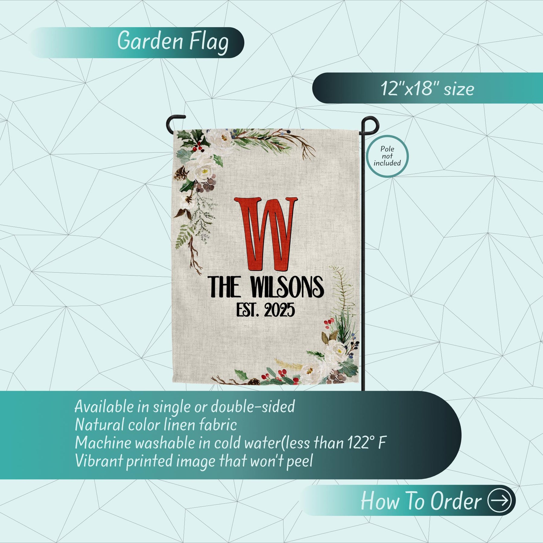 Welcome guests in style with this Custom Garden Flag featuring your Family Name Sign! Perfect for Easter Decor, Summer Style, or everyday Porch Decor, this Last Name Sign adds charm to your Yard Art and Garden Decoration. A lovely Gardening Gift or thoughtful housewarming idea, this Welcome Sign pairs beautifully with a Door Wreath for a complete look. Whether you're updating your Yard Decor or gifting a Custom Flag to someone special, this personalized flag brings warmth and personality to any outdoor space.